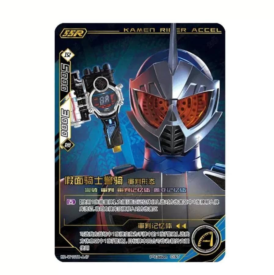 This Kamen Rider trading card from the Hero Battle X Kamen Rider Kayou series features the iconic Kamen Rider Accel Trial Gaia Memory with rarity SSR