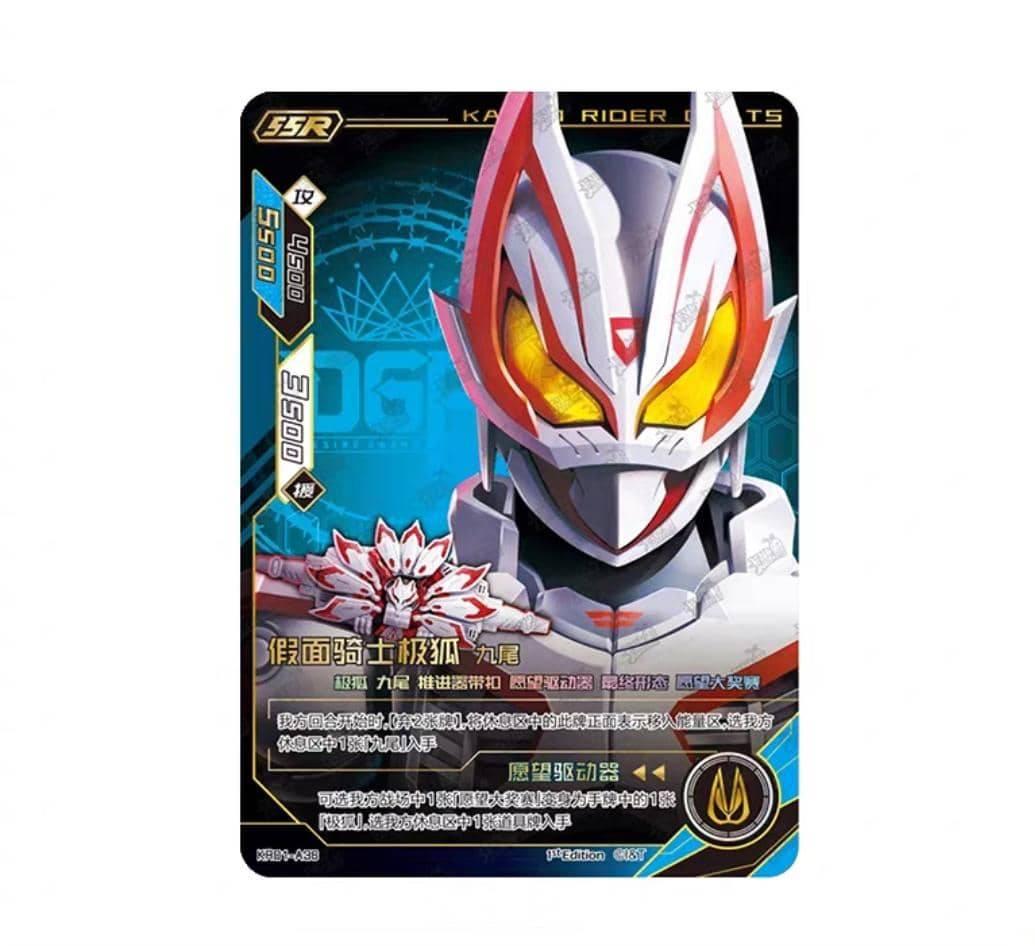This Kamen Rider trading card from the Hero Battle X Kamen Rider Kayou series features the iconic Kamen Rider Geats , Geats IX Raise Buckle with rarity SSR