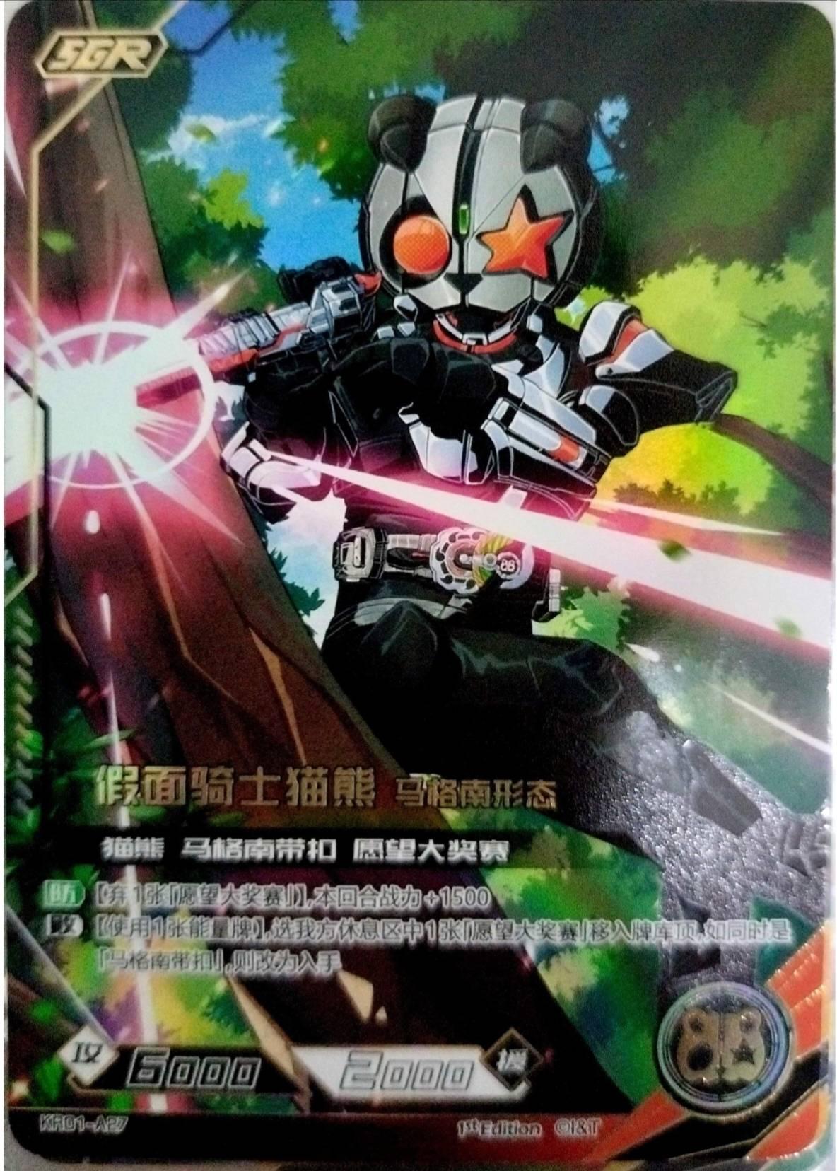 This Kamen Rider trading card from the Hero Battle X Kamen Rider Kayou series features the iconic Kamen Rider Da-Paan with Magnum Form from Kamen Rider Geats Series with rarity SGR