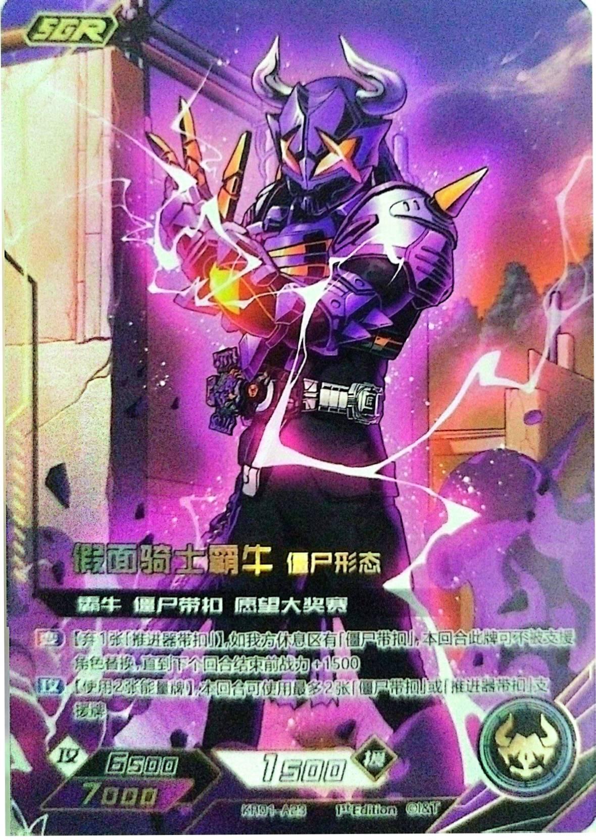 This Kamen Rider trading card from the Hero Battle X Kamen Rider Kayou series features the iconic Kamen Rider Buffa Zombie Form from Kamen Rider Geats Series with rarity SGR
