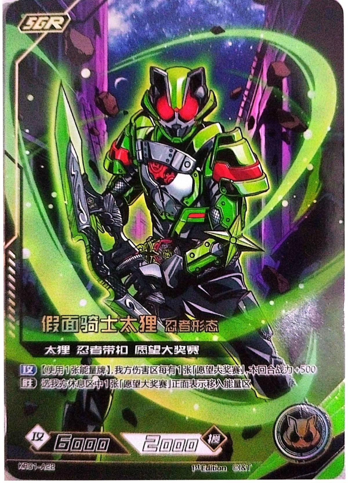 This Kamen Rider trading card from the Hero Battle X Kamen Rider Kayou series features the iconic Kamen Rider Tycoon Ninja Form from Kamen Rider Geats Series with rarity SGR