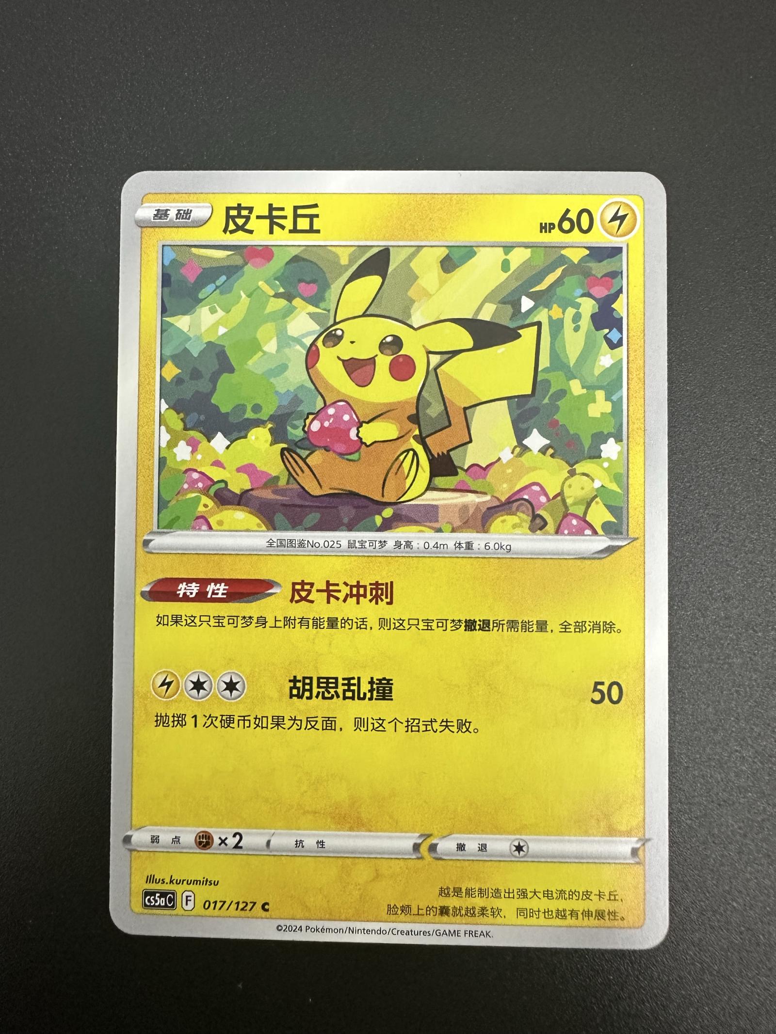 Pikachu 017/127 cs5aC CN Brave Stars (Charm) Non Holo New