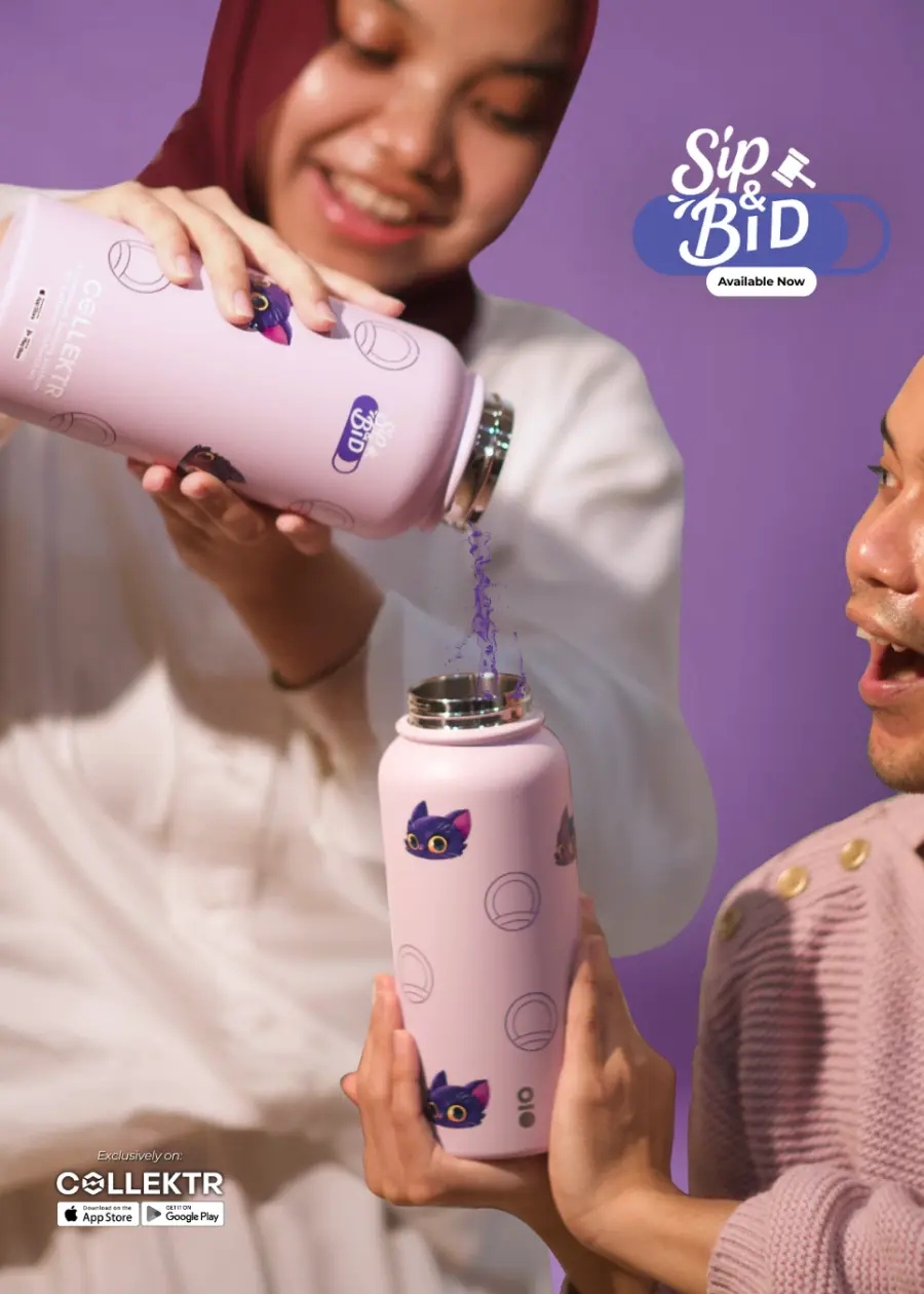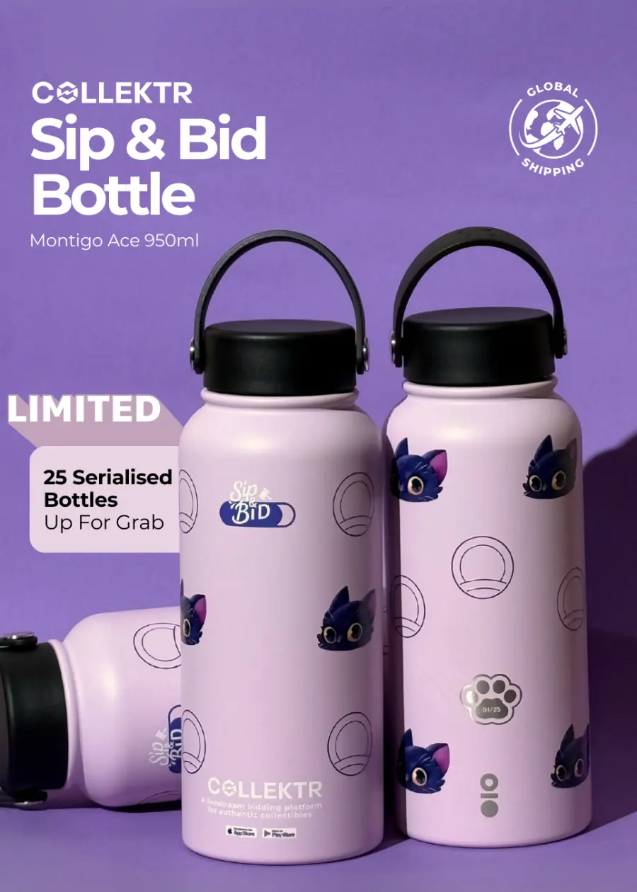 - 💜 Unique COLLEKTR Design: Featuring the playful Sip & Bid mascot, KITR illustrated by Julian Kok.