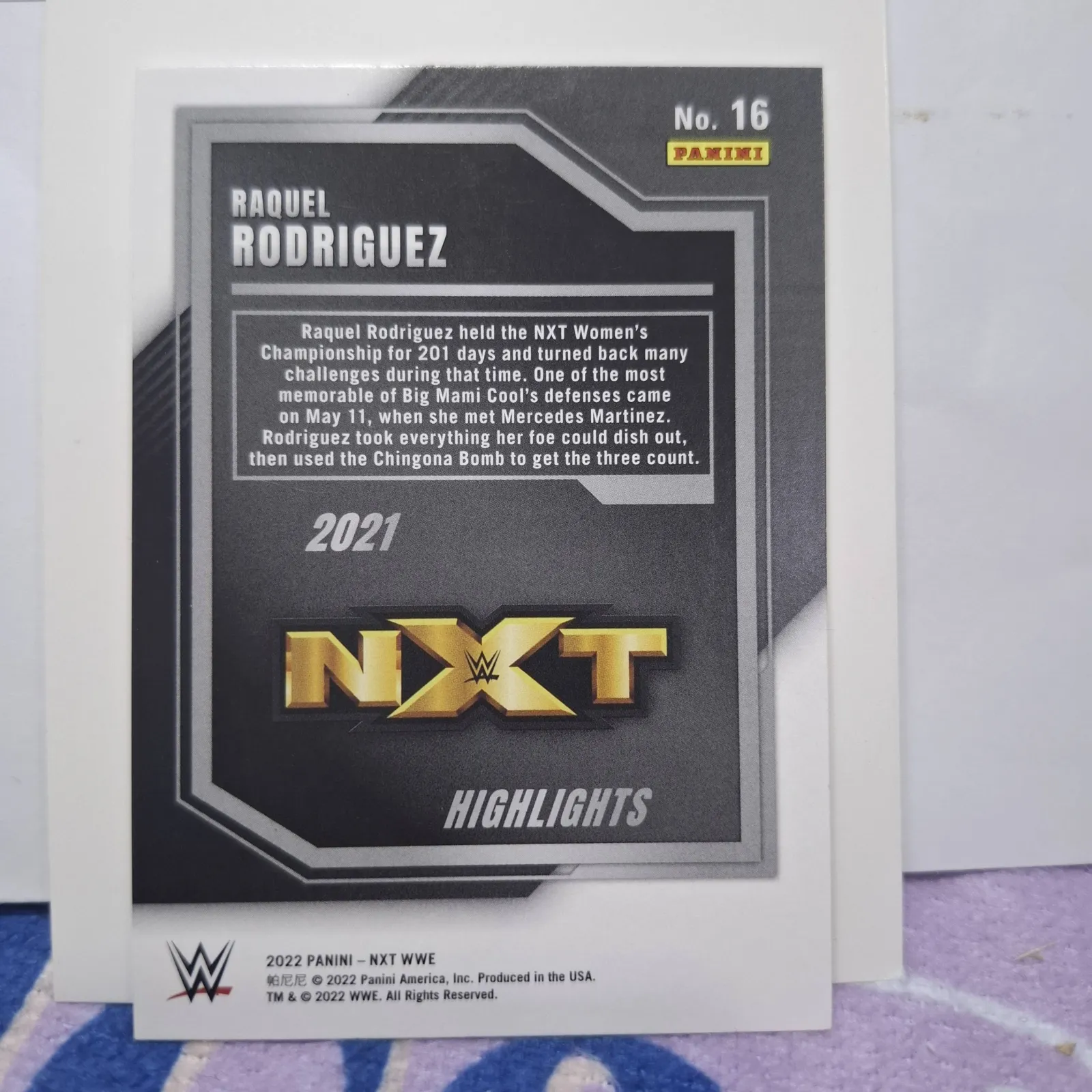 2021 Panini NXT Highlights Raquel Rodriguez WWE Women's Championship Card #11/21