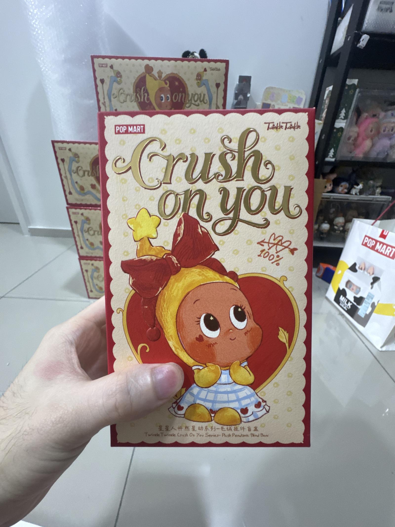 This is a Pop Mart Crush On You series collectible plush pendant featuring the character Twinkle Twinkle. The item is a blind box collectible, unopened and in its original packaging. Perfect for collectors of designer plush toys and Pop Mart figures.