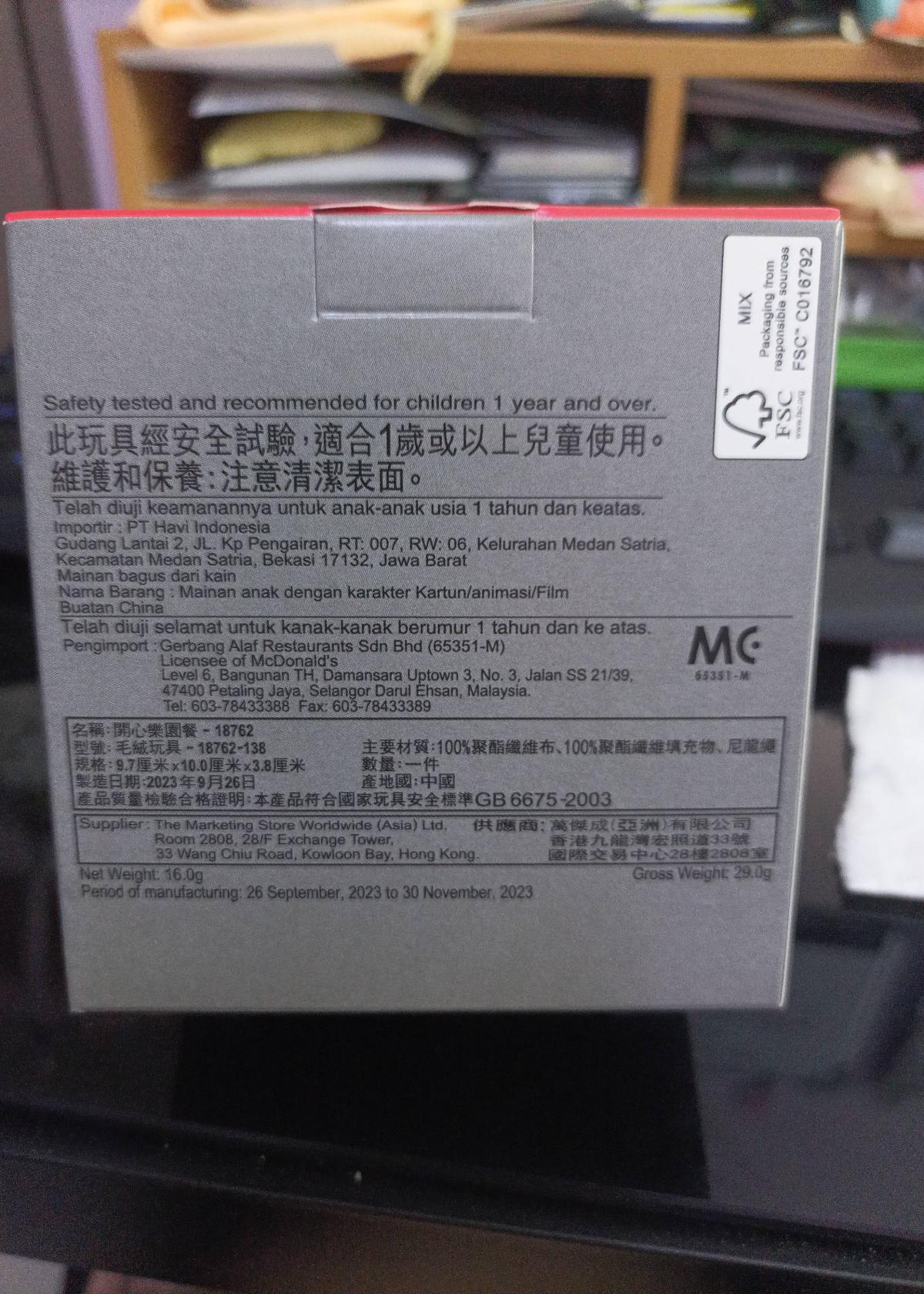 This is a limited edition plush toy featuring Badtz-Maru from the Hello Kitty and Friends series, dressed as a Yu-Gi-Oh! monster. The item was produced as part of a McDonald's promotional collaboration. The plushie comes in its original packaging, which features branding and information in multiple languages. Ideal for collectors of Sanrio, Yu-Gi-Oh!, or McDonald's promotional items.