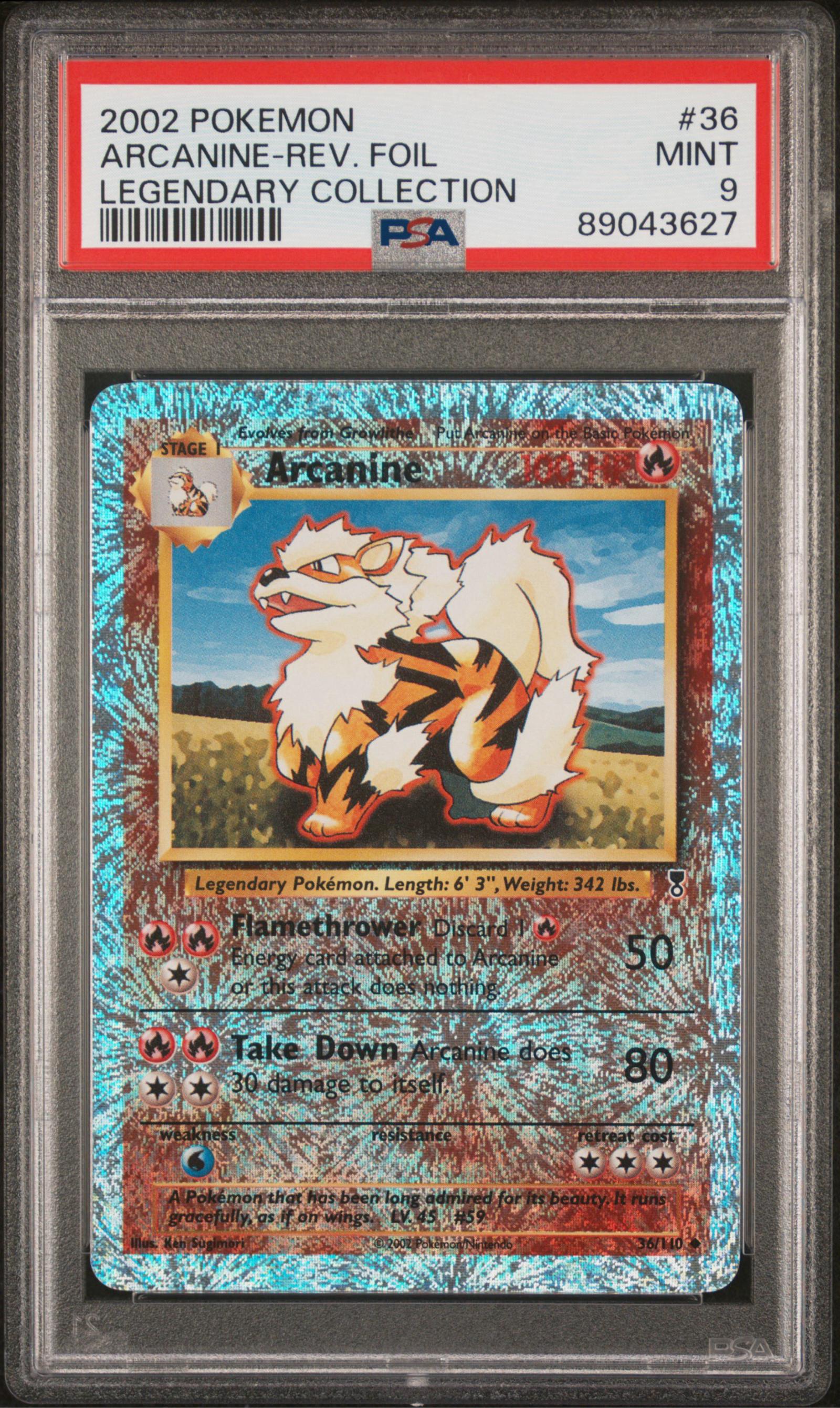 2002 Arcanine Reverse Foil 36/110 PSA 9 Legendary Collection Pokemon TCG (Reverse Holo)