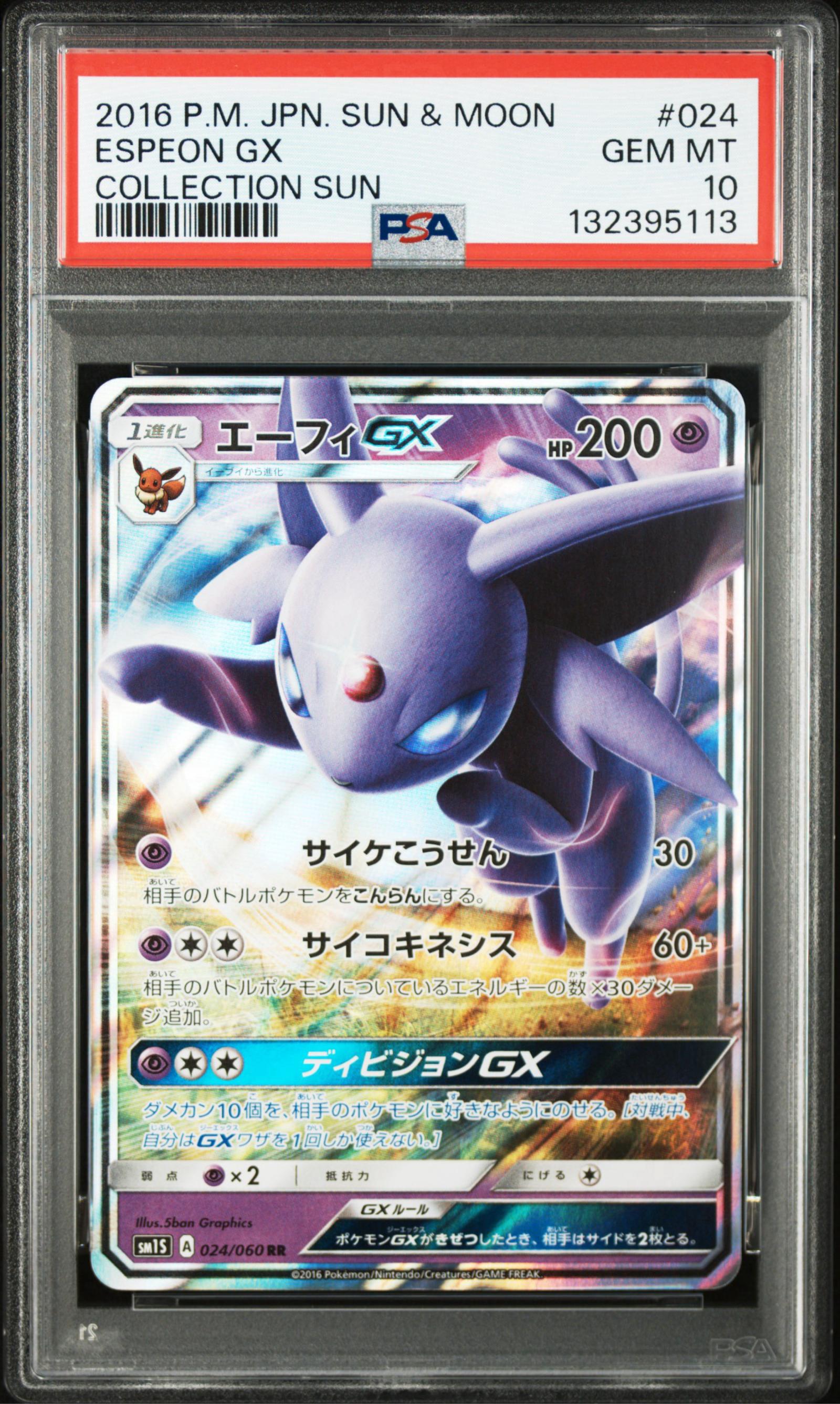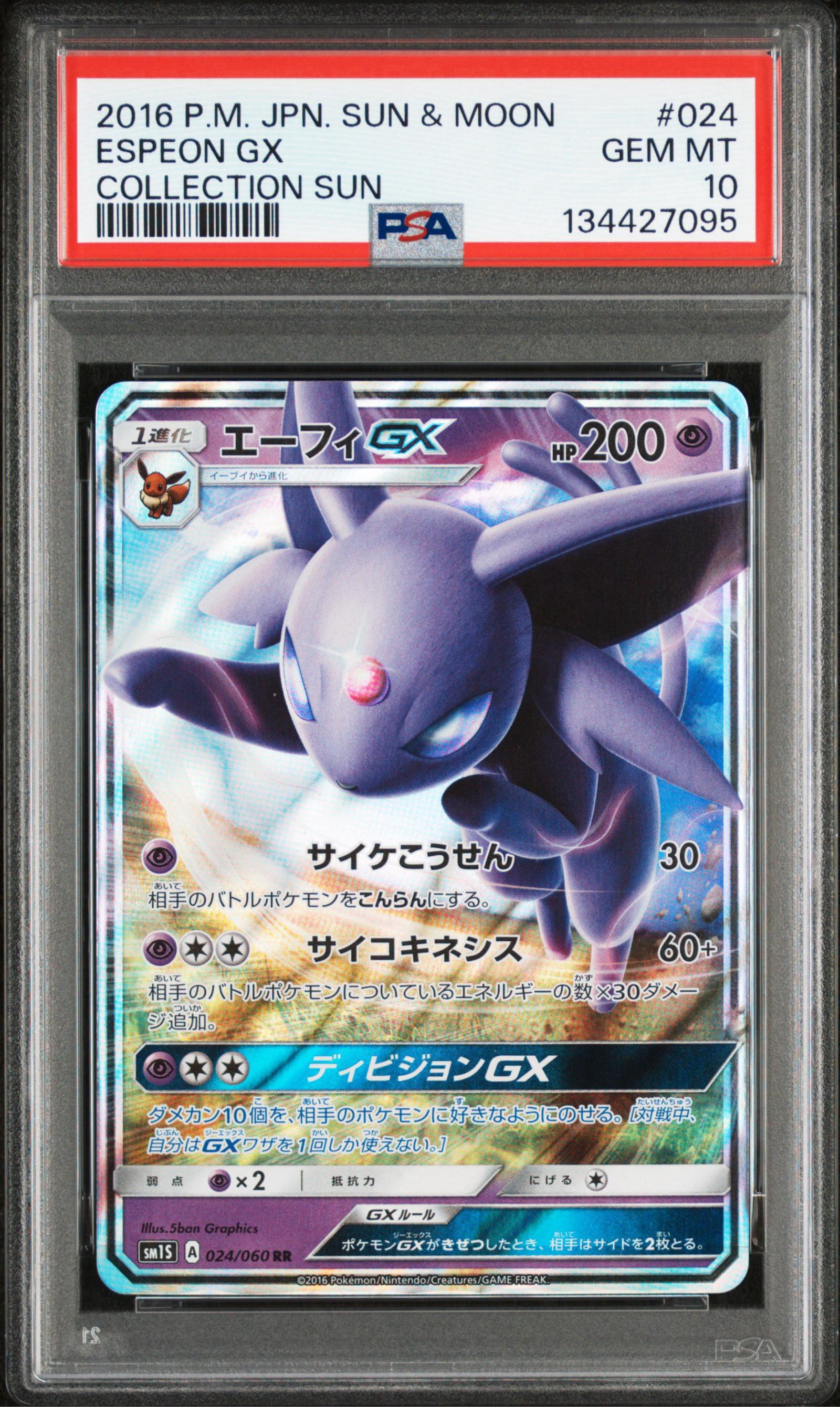 2016 Japanese Sun & Moon Espeon GX PSA 10 Gem Mint #24 Collection Sun (Holographic (Holo))
