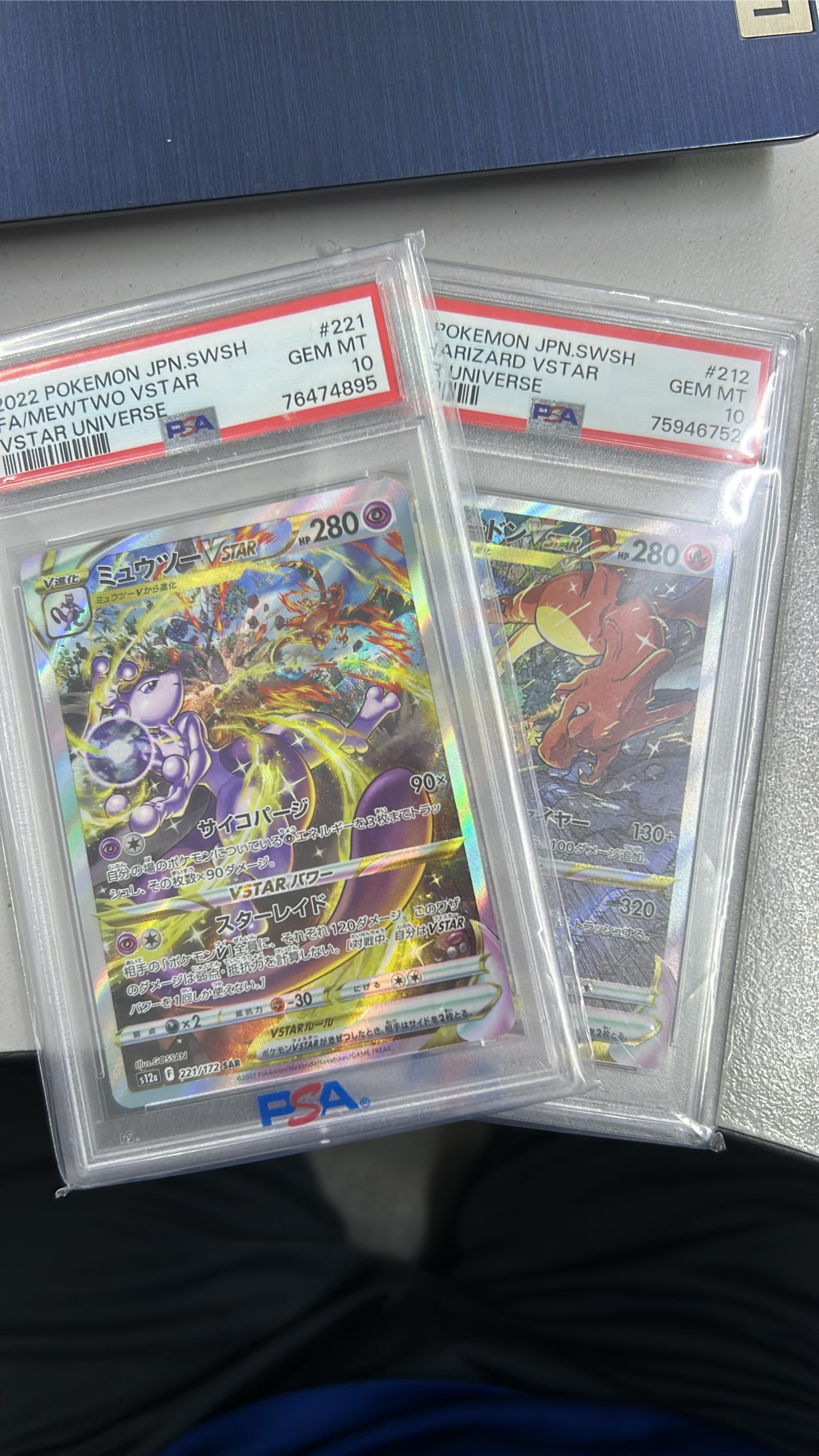 2022 Pokemon Japanese Mewtwo VSTAR #221 PSA 10 & Charizard VSTAR #212 PSA 10 (Full Art)