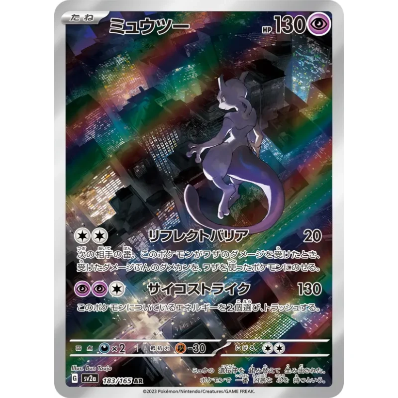 2023 Pokémon SV2a Japanese Art Rare Mewtwo card, numbered 183. Graded PSA 9 Mint. This card features unique artwork and is foil. The card is collectible and can be playable depending on the meta. Set code SV2a, language JP.