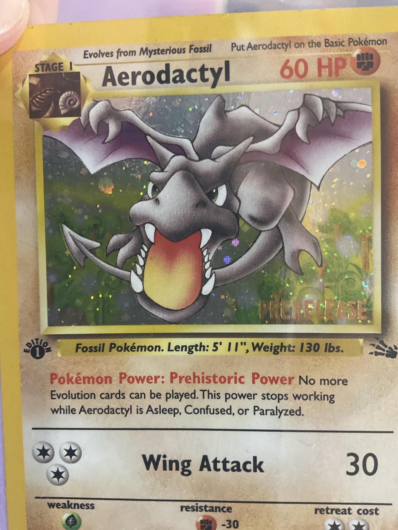 Aerodactyl 1st Edition Pre-Release Holo Fossil Pokemon Card (Holographic (Holo))