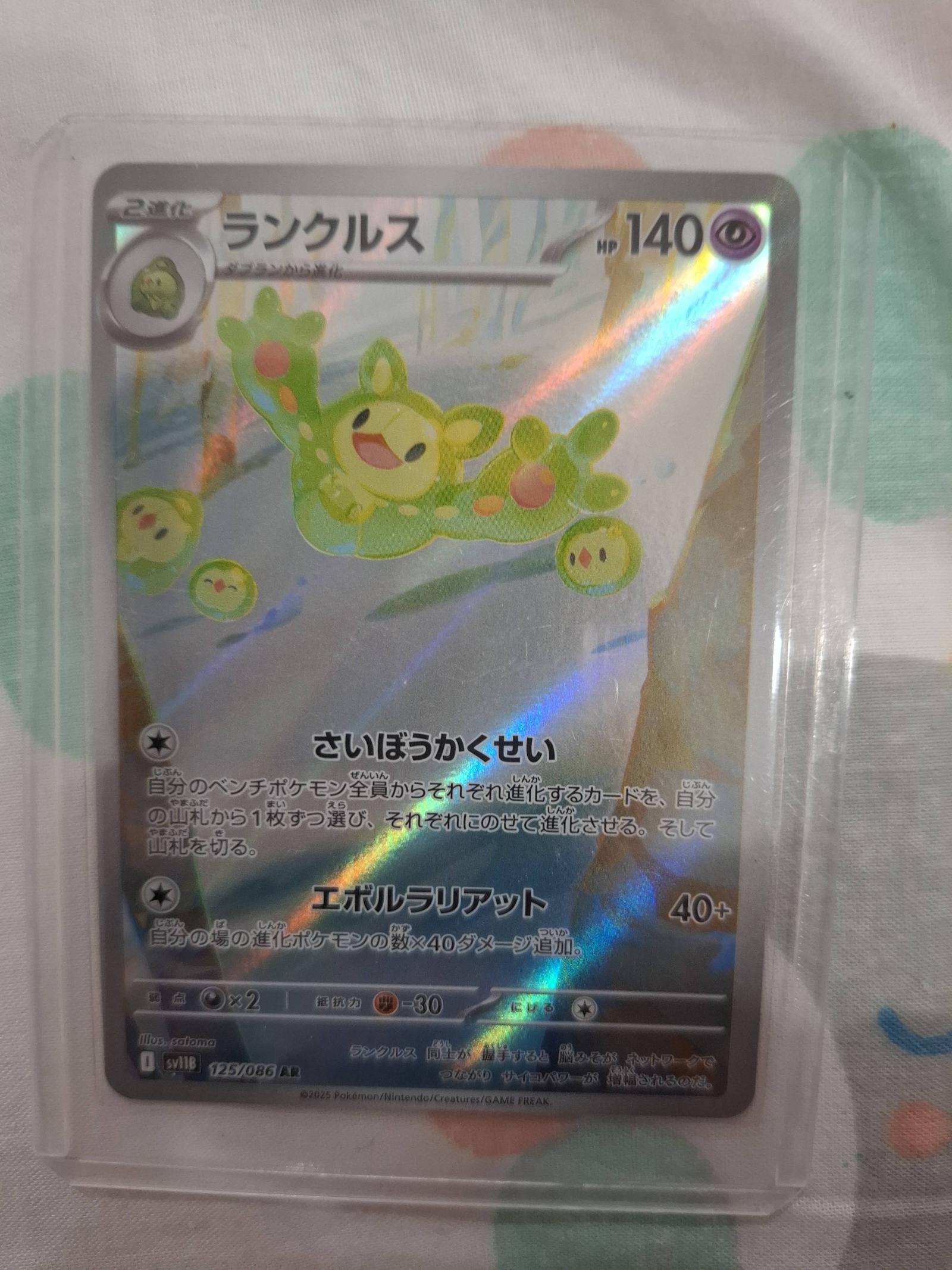 Card number 125/086 from set SV11, featuring ランクルス (Reuniclus) with 140 HP. This is a holo Japanese language card illustrated by satomi. The card is foil and collectible, playable in Pokemon TCG.