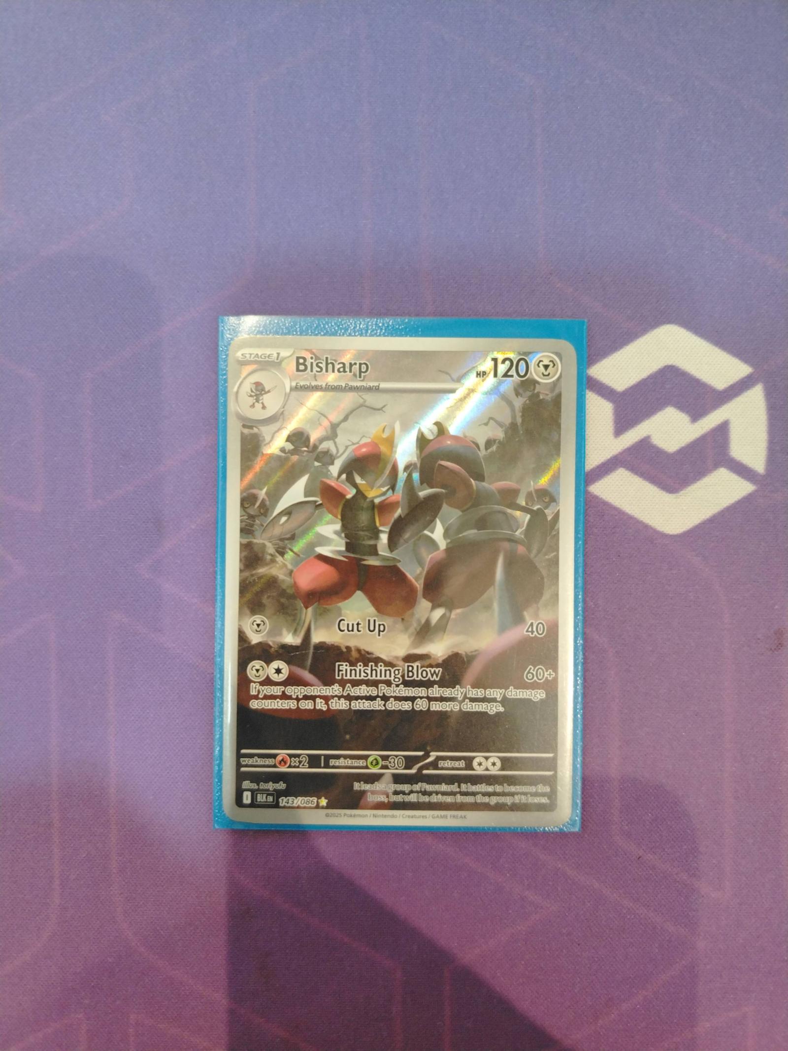 Bisharp promo card #143/086 from the Evolving Skies set (2021), illustrated by Naoki Saito. This holo card is playable in standard Pokemon TCG formats and features the Steel type. Card code 143086.