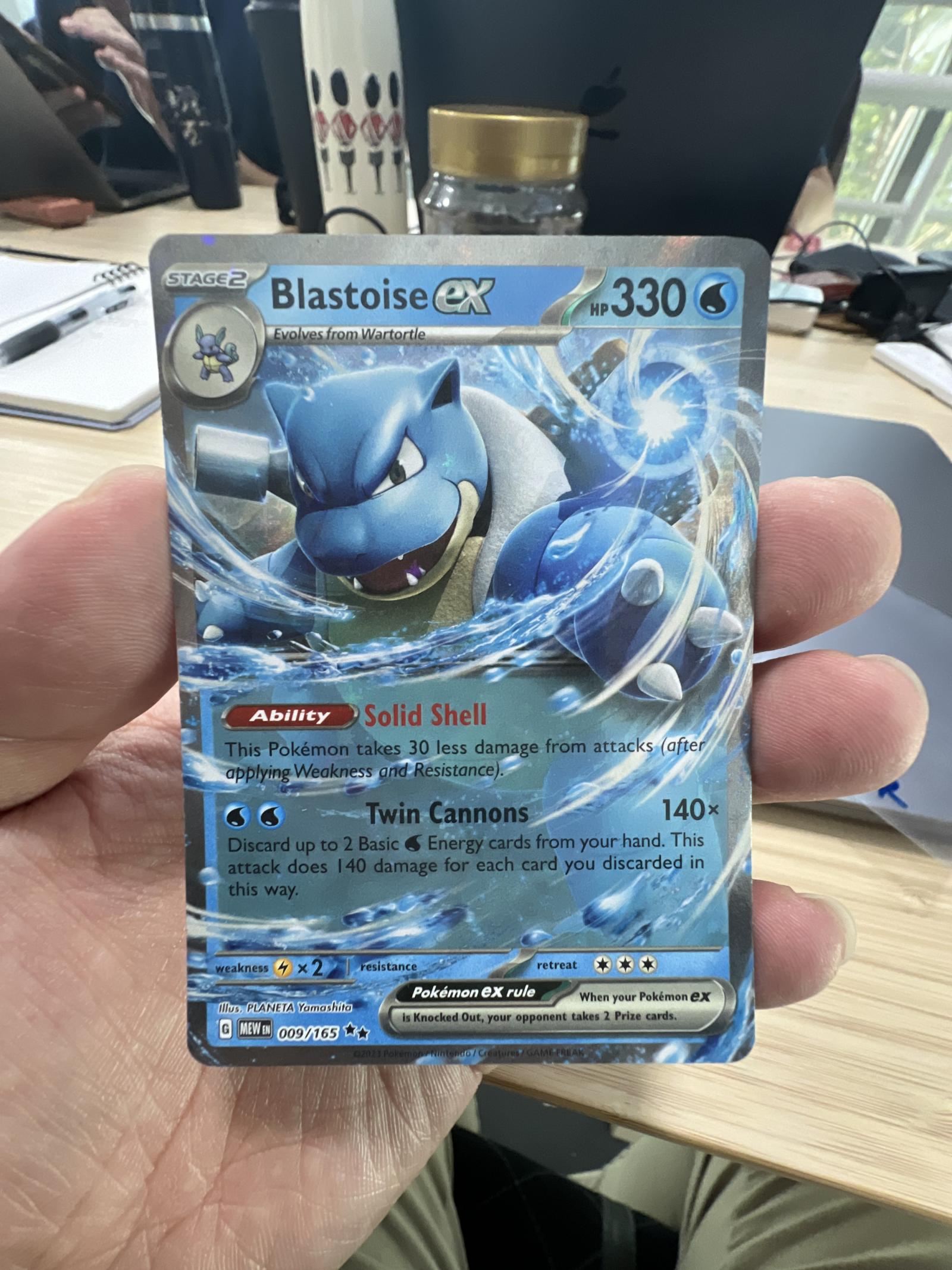 Blastoise ex is equipped with the Solid Shell Ability, reducing incoming damage by 30, and the powerful Twin Cannons attack, which deals 140 damage per discarded Basic Water Energy—an attack that can swing games when built around correctly. As a foil card, it showcases an eye-catching holographic shine that is highly desirable among collectors, plus its EX era status adds further historical and playability value.
