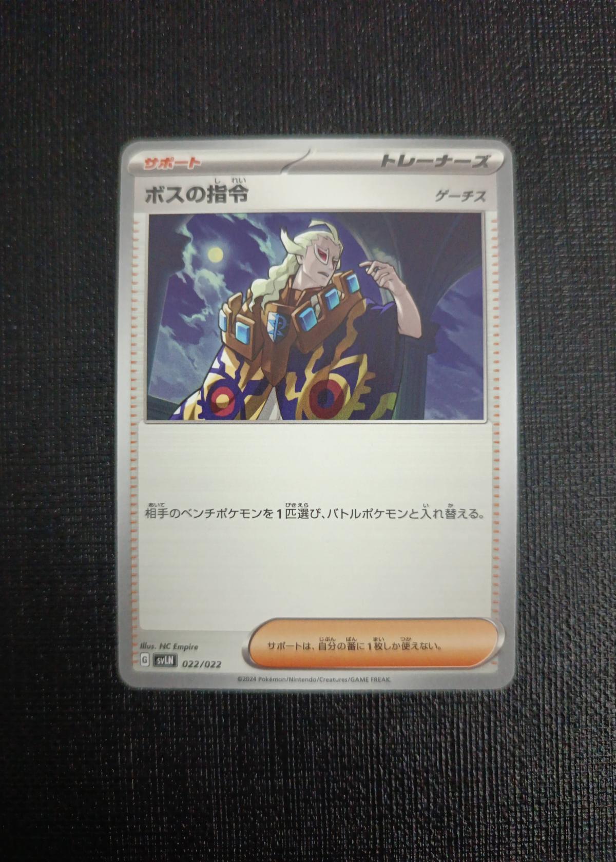 Boss's Orders (ゲーチス) from the Pokémon TCG SVLN set, illustrated by NC Empire. This is card number 22/22, printed in Japanese (language code: ja), and is a standard (non-foil) trainer Supporter card. It features Ghetsis and is a very playable card in competitive Pokémon TCG meta, often used to manipulate the opponent's bench. Set code: SVLN. Card code (G): sv1LN. Not graded or slabbed. Not a foil card.