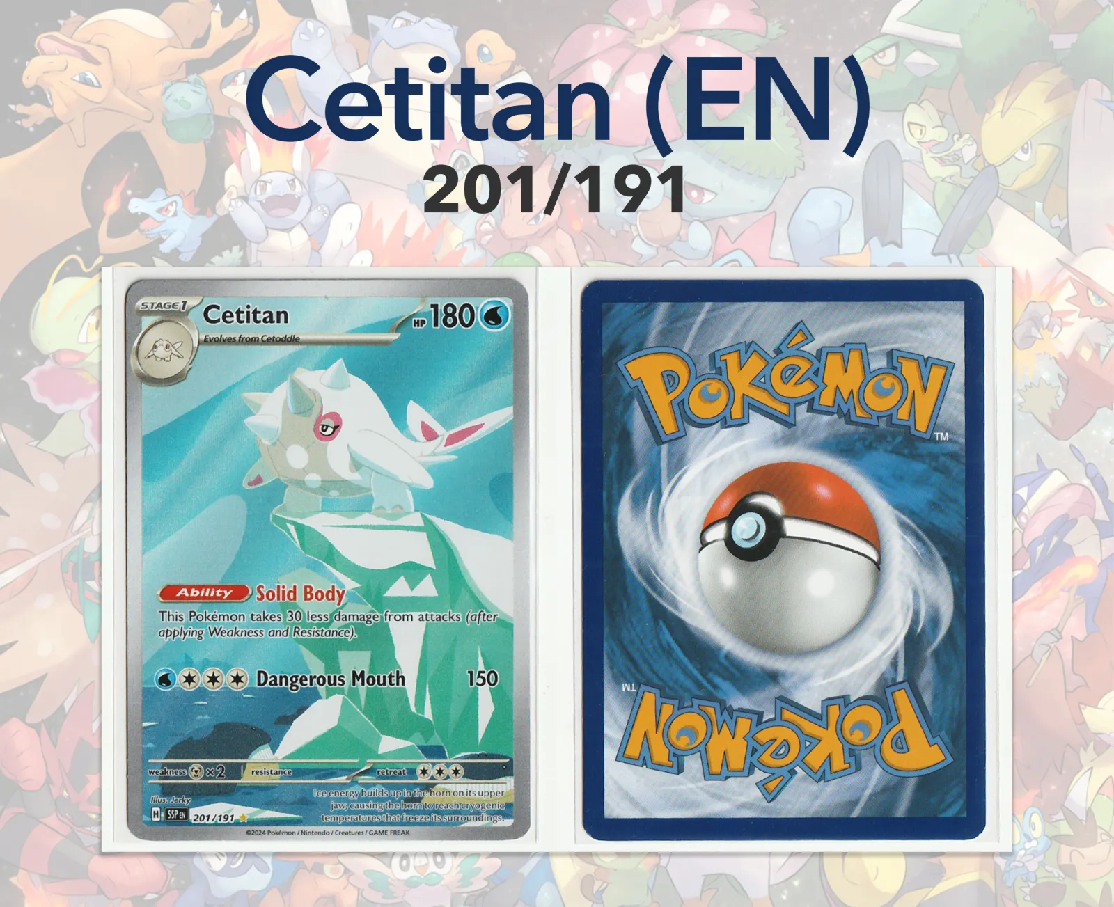 Name : Cetitan Series : Surging Sparks Number : 201/191 Language : English Rarity : Illustration Rare (IR) Condition : Near Mint (NM)