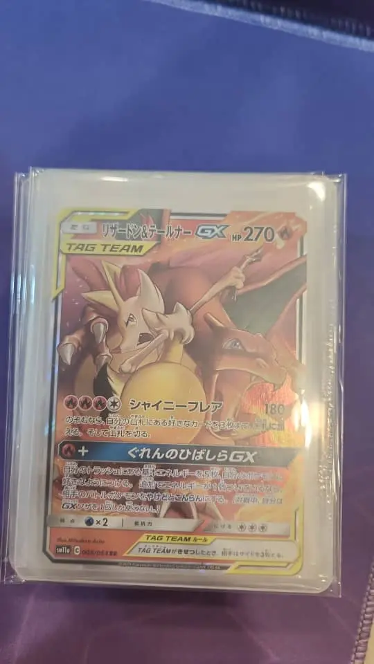 Collectibility and playability: Charizard TAG TEAM GX is a highly collectible artwork and a popular chase for Charizard collectors and SM-era TAG TEAM collectors alike. As an older SM11a card it has more collector value than current competitive playability; its appeal is strongest to set collectors, Charizard fans, and those completing Japanese Remix Bout sets. Foil/full-art presentation and the Tag Team branding add to its desirability.
