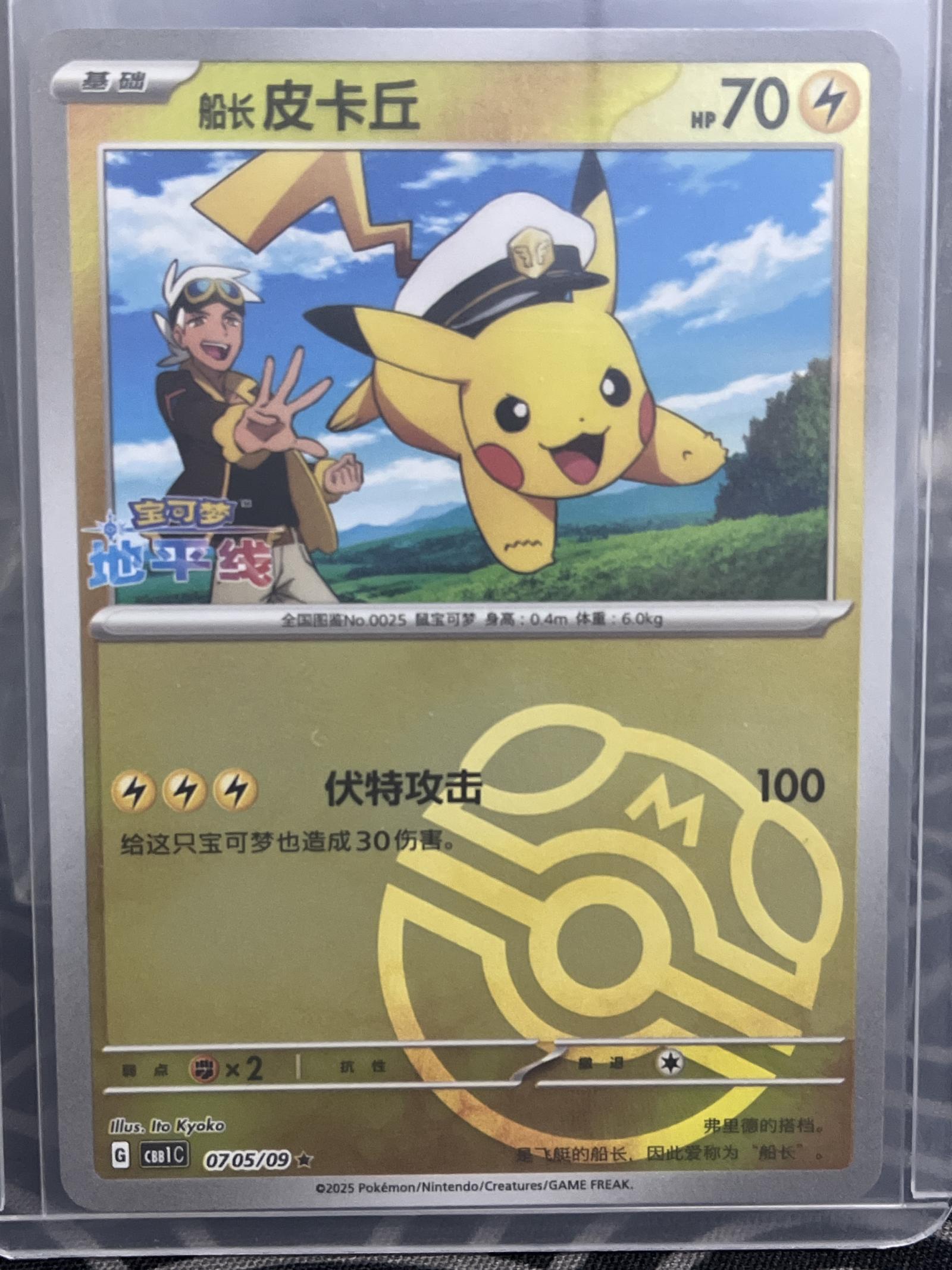 Card number 0705 from the GBB1C set, illustrated by Ito Kyoko. This Chinese language card features Captain Pikachu and is a rare collectible from the 2025 set. The card is a normal printing without holo or secret rare treatments. The code 0705/09 identifies it specifically in the set. This card is primarily a collectible item and may not be widely used in competitive meta play.
