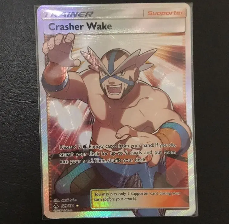 Crasher Wake 129/131 Full Art Supporter Trainer Ultra Rare Sun Moon Forbidden Light Pokemon Card TCG Authentic Original