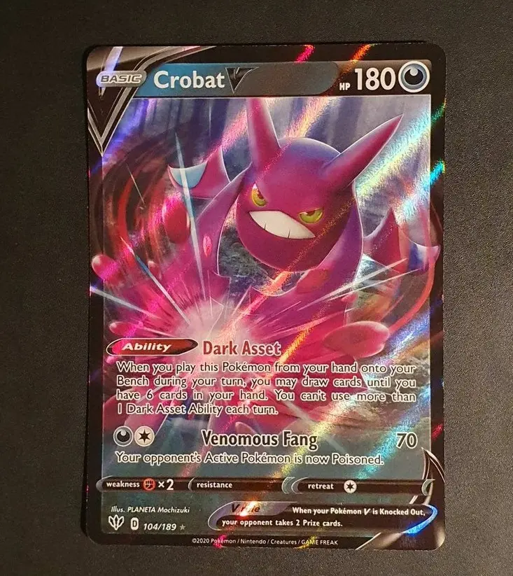 Crobat V 104/189 Full Art Ultra Rare Sword Shield Darkness Ablaze Pokemon Card TCG Authentic Original