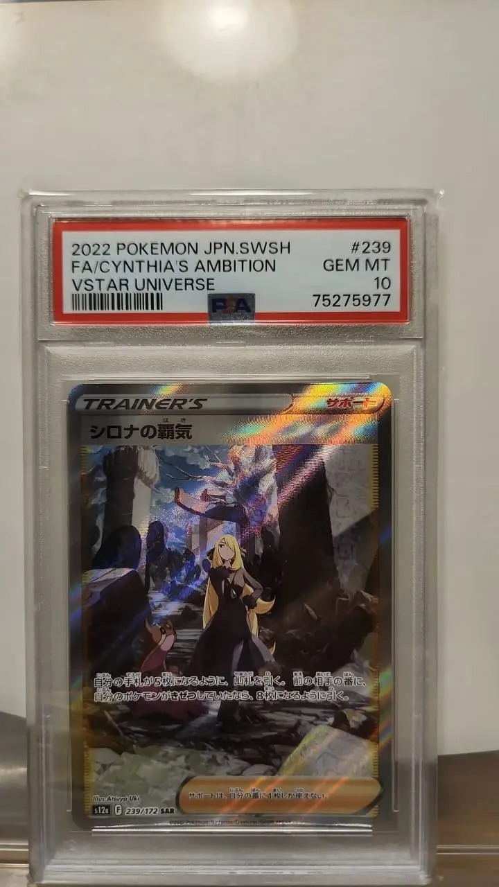 Condition & grading This is an ungraded, raw Japanese full-art Cynthia’s Ambition (Trainer) from VSTAR Universe, listed as a Secret Art Rare (239/172). Card is being sold raw — no professional grading included in this listing.