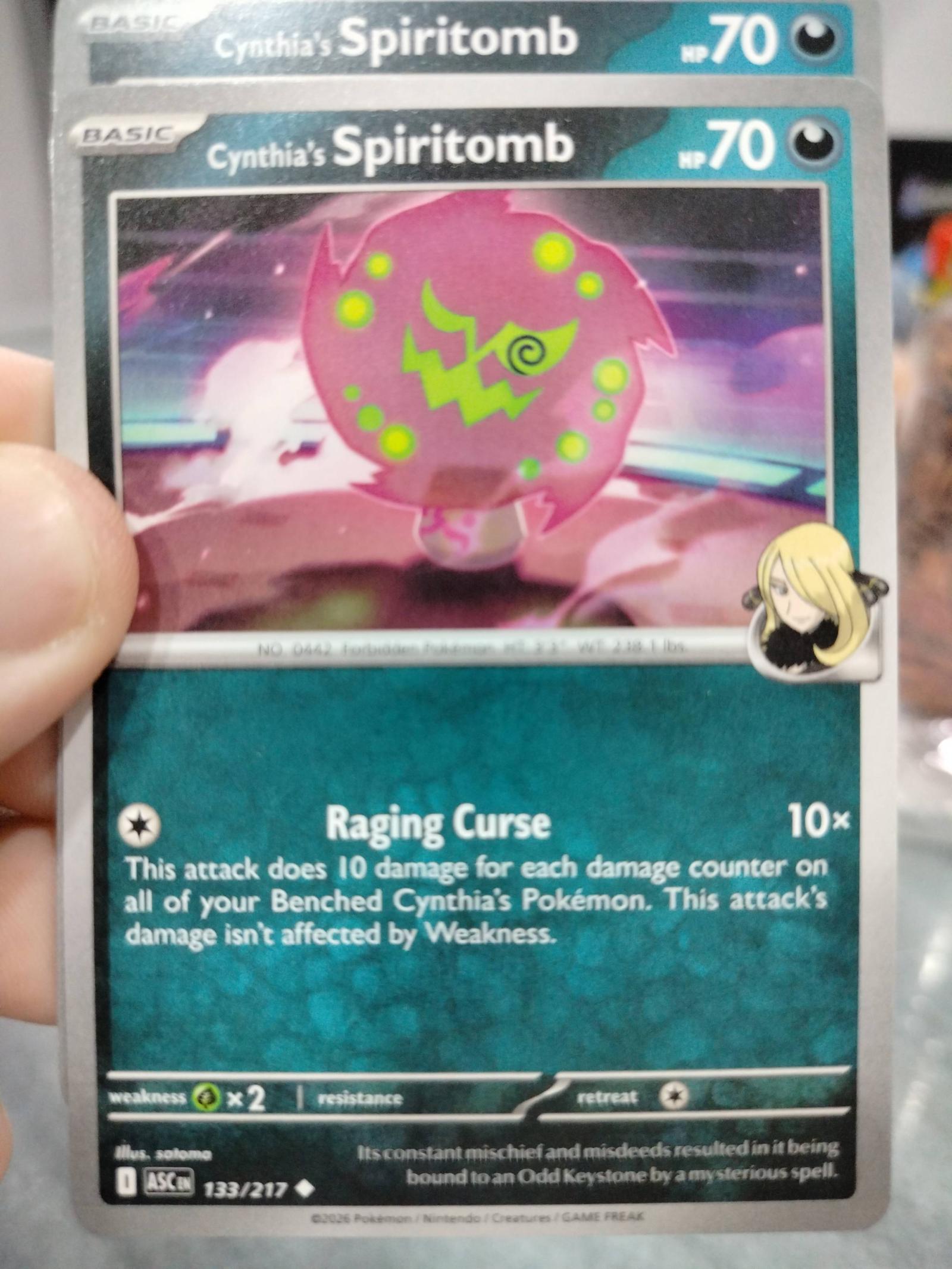 Cynthia's Spiritomb card from the Pokemon TCG Ascension set (Set code: ASC), card number 133/217. Illustrated by solomo. This card features the Raging Curse attack and is playable in the meta. The card has a normal printing treatment.