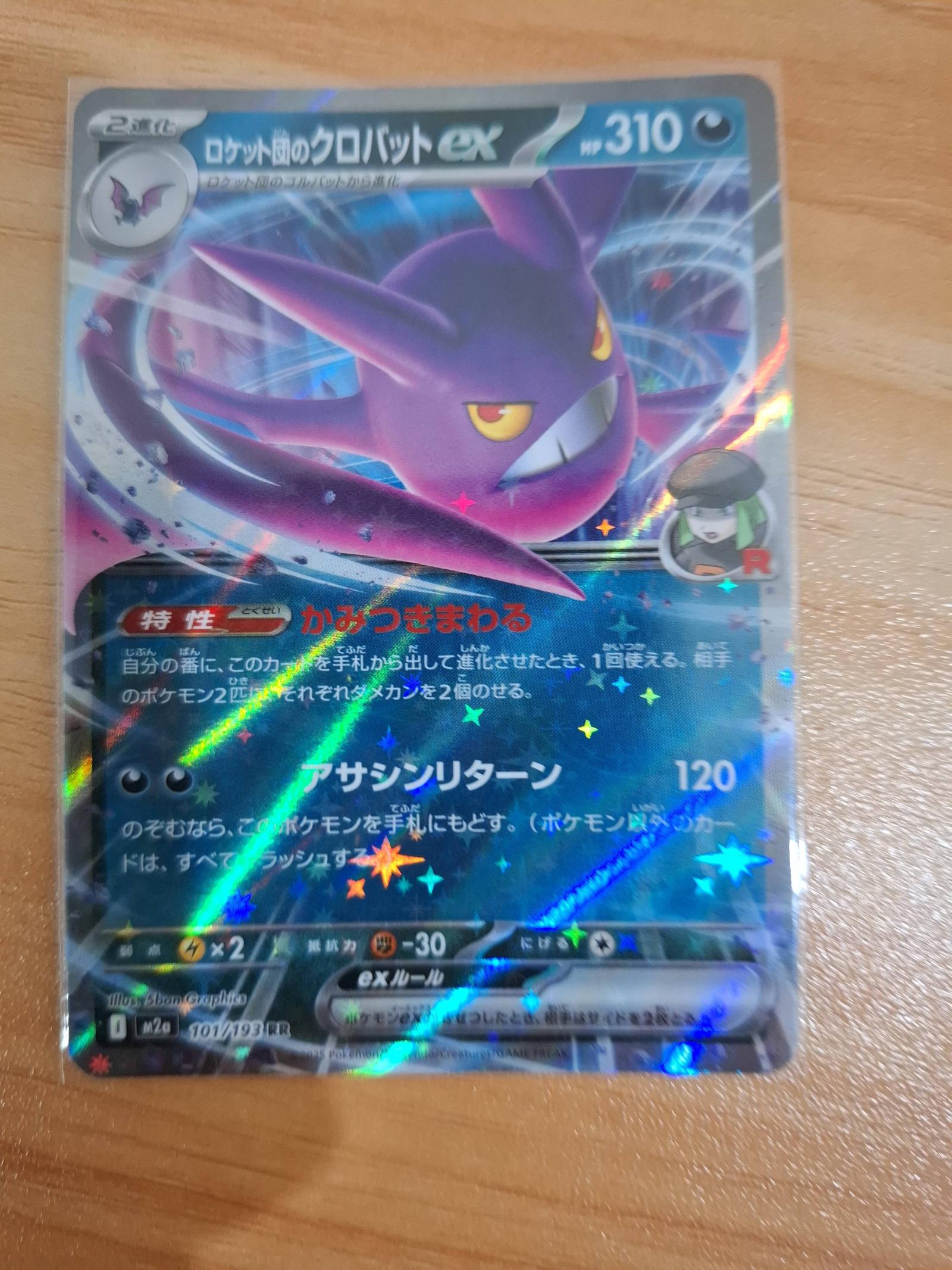 Dark Crobat ex card number 101/193 from the Team Rocket's Secret Wonders set. Japanese language card with a holographic foil finish. The card features artwork by 5ban Graphics. This collectible card is playable in the Pokémon TCG and is known for its strategic utility in decks featuring Dark Pokémon. The card showcases the Pokémon Crobat ex with 310 HP.