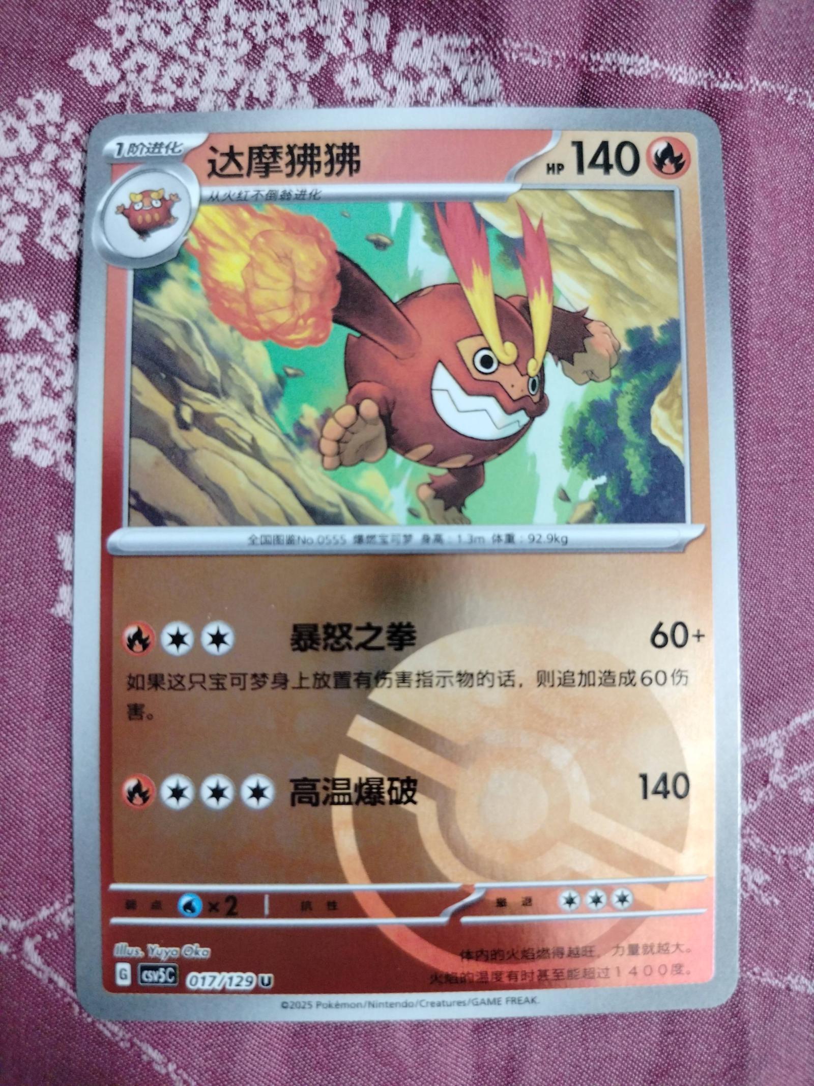 Chinese language Darumaka card from the Pokémon Scarlet & Violet set (set code csvSC). Card number 17/129, artist Yayyo Oka, card code 017129. This is an uncommon card and not holofoil. Playable in meta depending on deck choice; Darumaka can provide useful fire-type attacks. No special foil or grading noted.