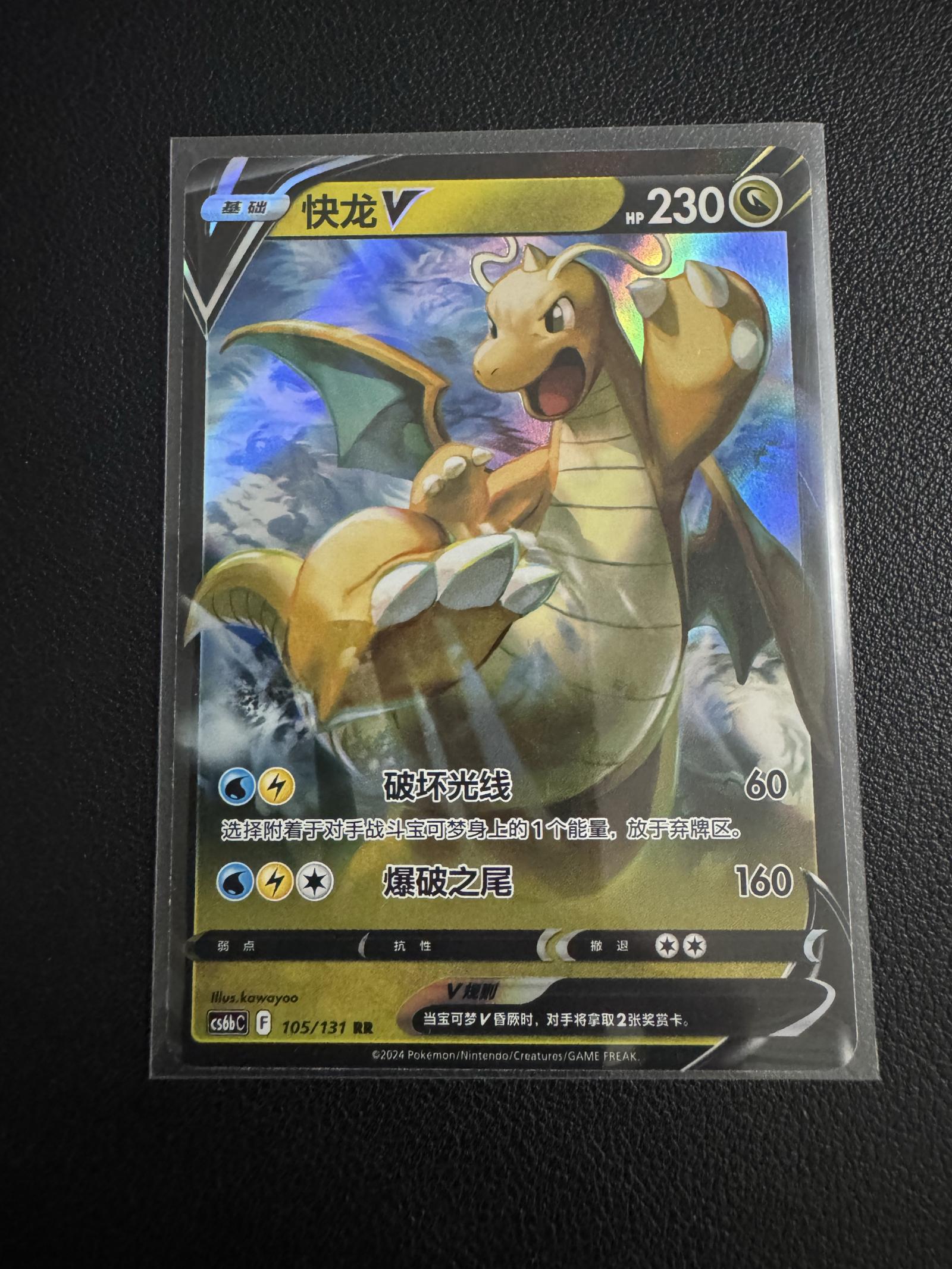 Dragonite V card from the Chinese Pokemon TCG set csbhC, card number 105/131, illustrated by artist kawayoo. This card is a full art rare (RR) with a holographic foil surface. It has 230 HP and features attacks that make it playable in the meta. The card is in Chinese language. Perfect for collectors and competitive players.