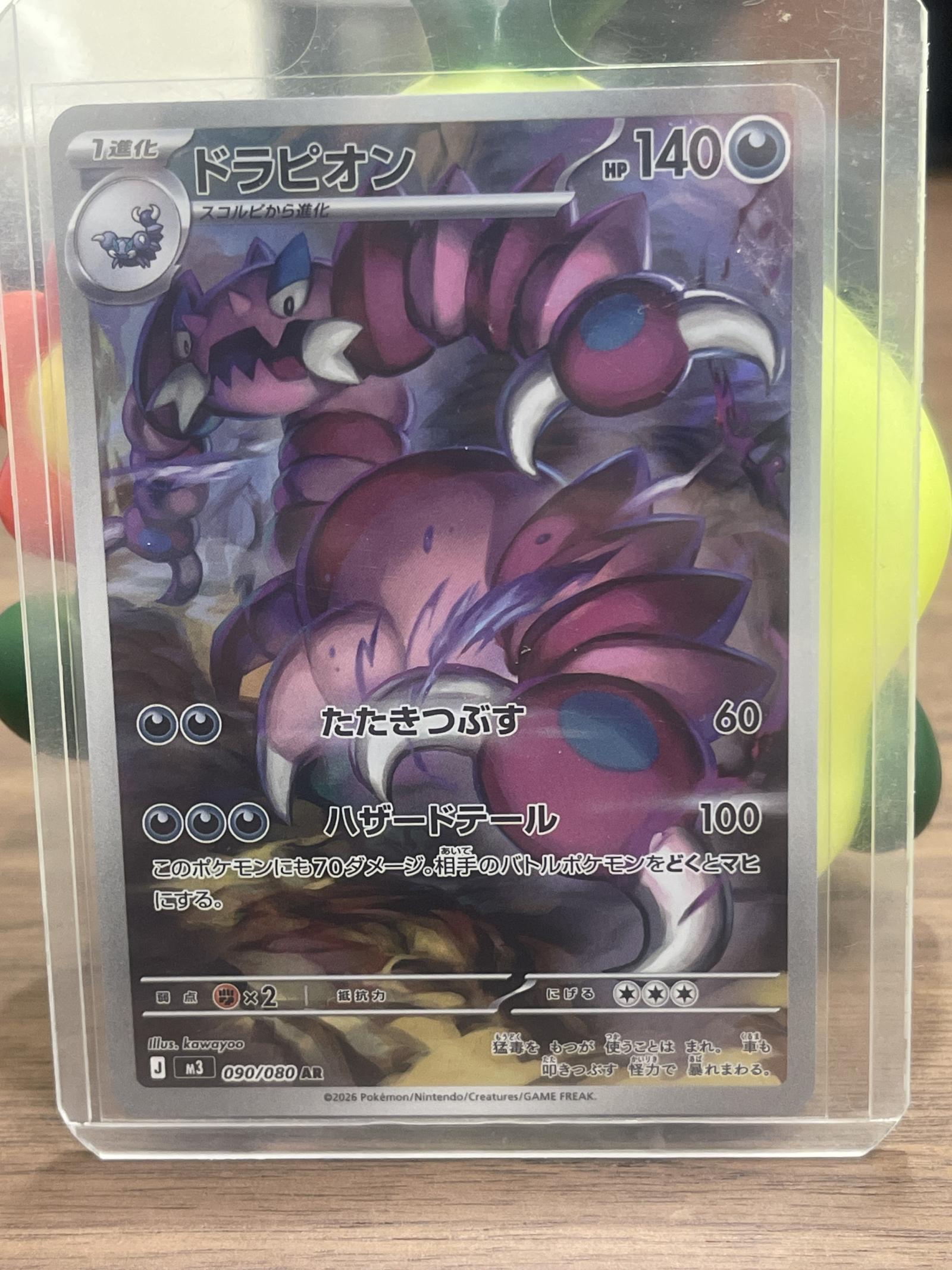 Drapion card from the 2026 Pokémon TCG set, illustrated by kowayoo. Card number 090/080 AR indicates it is an alternate rare. Japanese language card. Foil finish. Playable in the metagame as a Dark type Pokémon with 140 HP.