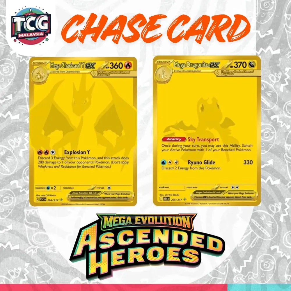 Marvel at the awesome potential as Mega Dragonite ex takes flight, leading a gathering of all-star Pokémon to battle! Trainer’s Pokémon and Stellar Tera Pokémon ex join returning and newly discovered Mega Evolution Pokémon ex, including some with special artwork showing off their biggest and boldest attacks. Celebrate the stars of Scarlet & Violet and the dawn of Mega Evolution with the Pokémon TCG: Mega Evolution—Ascended Heroes expansion!