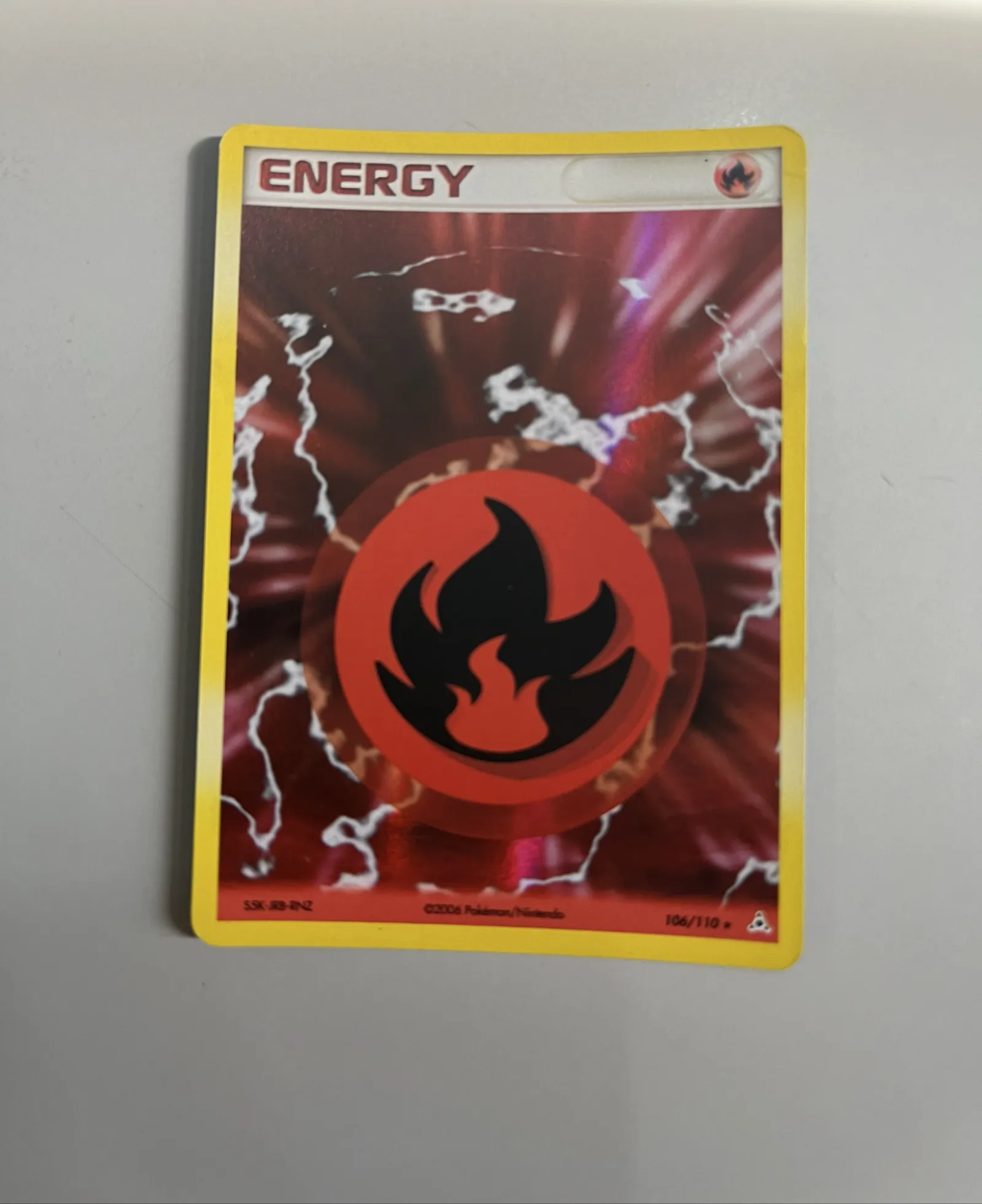 Fire Energy holo rare card features a full holofoil finish, giving it a strong reflective shine across the entire surface.