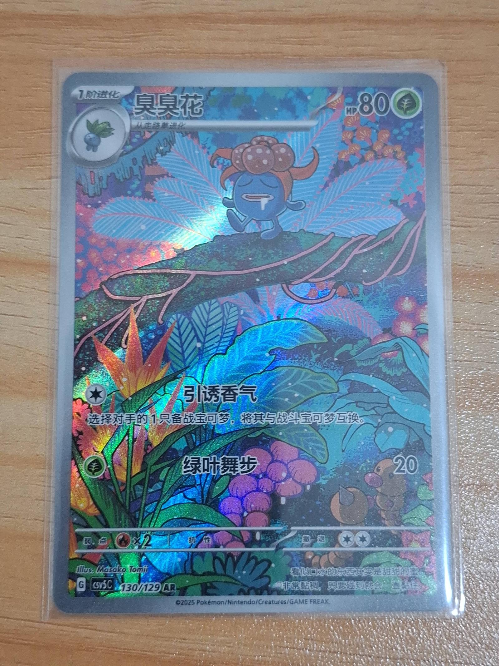 Galarian Gloom card from the 2025 Pokemon Sword & Shield Scarlet & Violet set (Code: CSV5C). Illustrated by Masako Tomii. This is a Chinese language card numbered 130/129 with an alternate rare full art foil treatment. The card features Galarian Gloom with 80 HP and Grass-type characteristics. Playability is moderate in meta as a collectible and niche option. The card's foil and alternate art make it special for collectors.