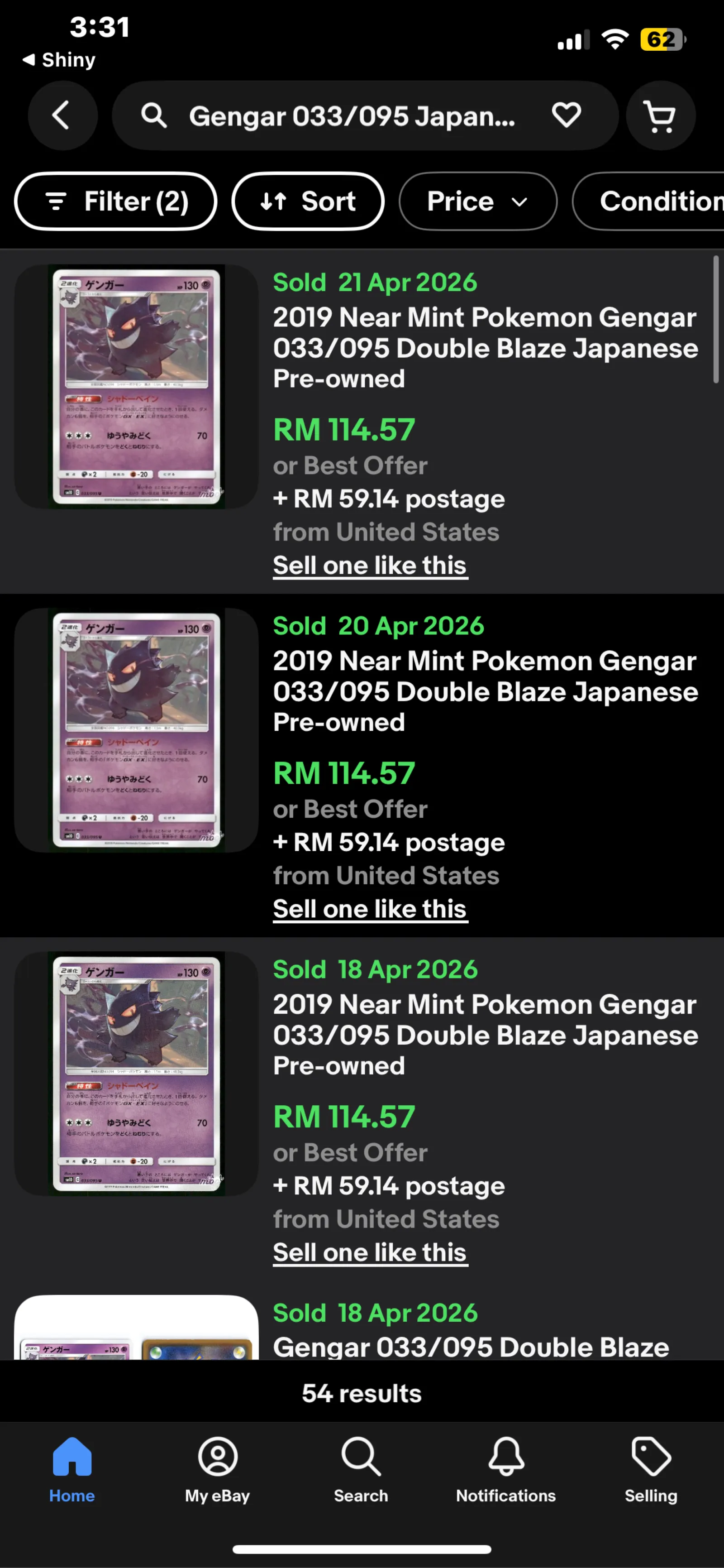 Auction ends in 1 week 1 day on 30 Apr 11:00pm, with a minimum bid increment of MYR 1.00.