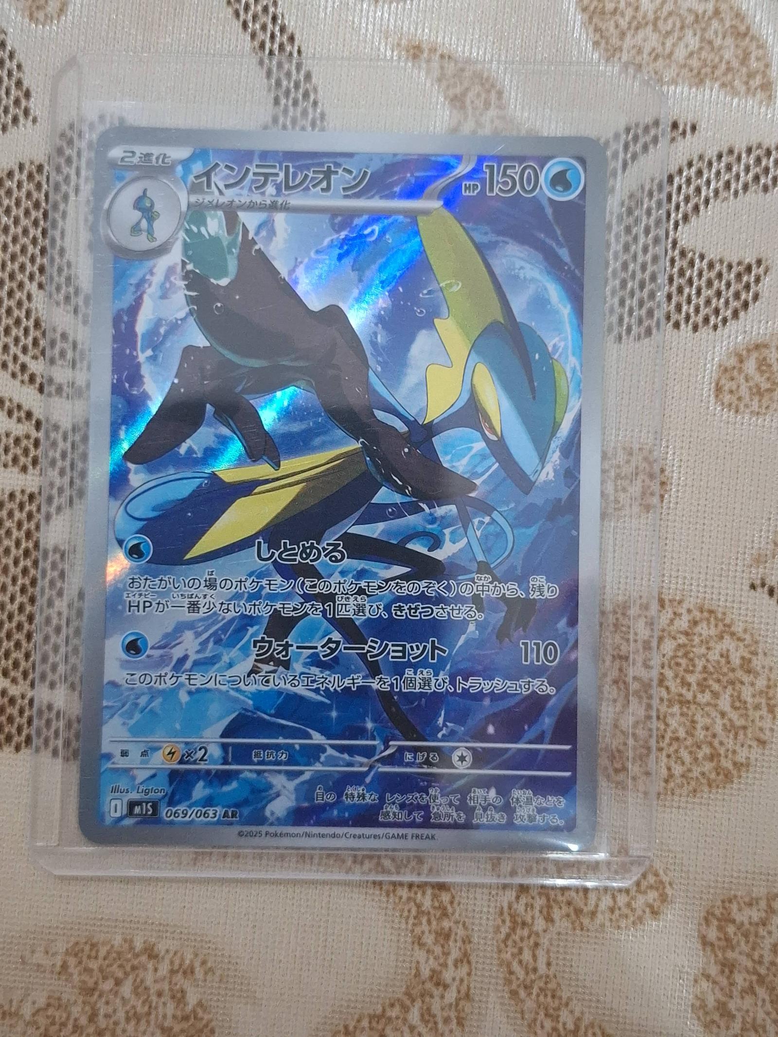 Inteleon AR (Alternate Rare) from the Scarlet & Violet (SV) set, card number 69/63. Illustrated by Ligton. This card is holofoil and printed in Japanese. Playable in the current meta as a Water type. The set code is M15. No grading information available.