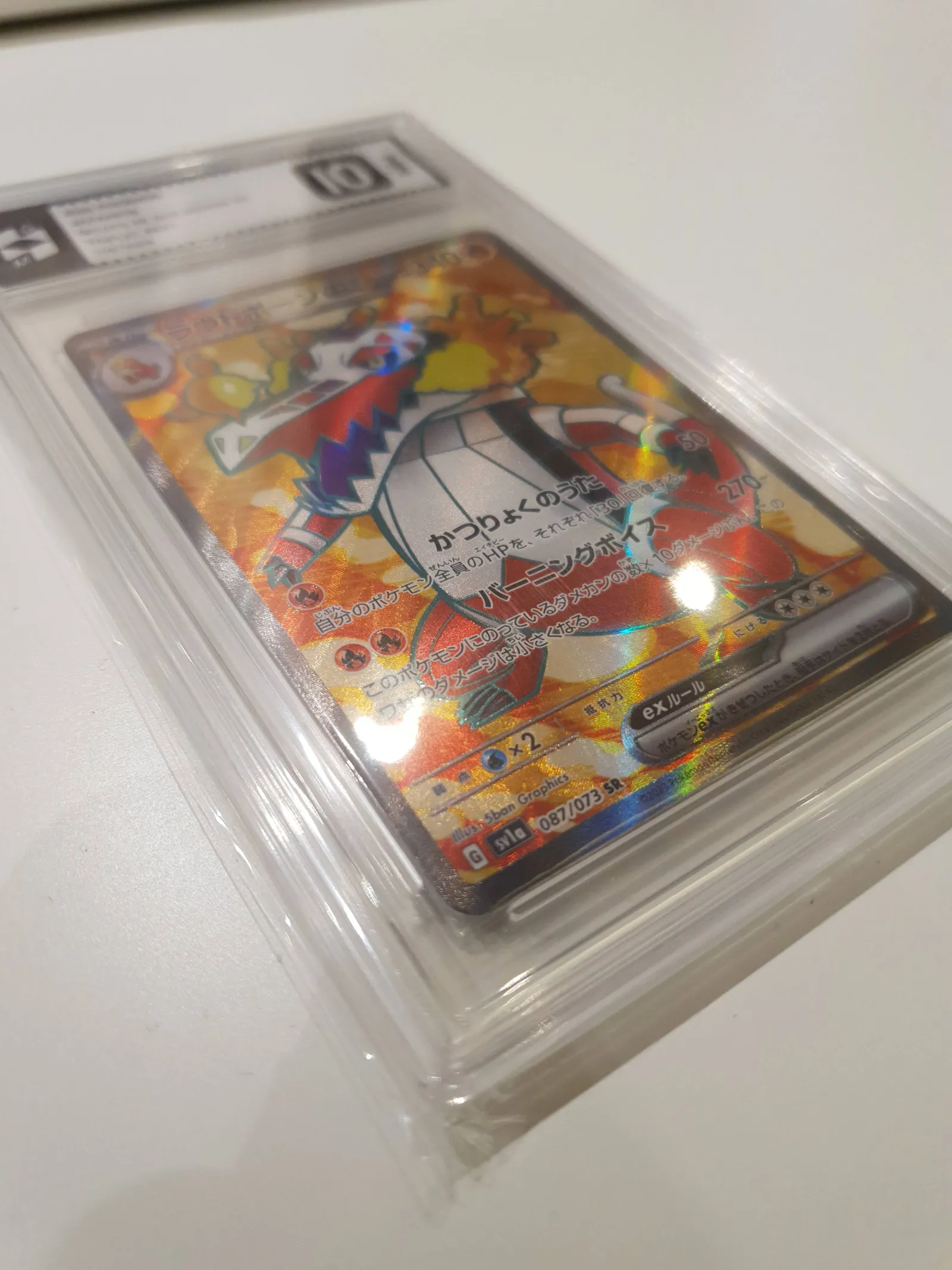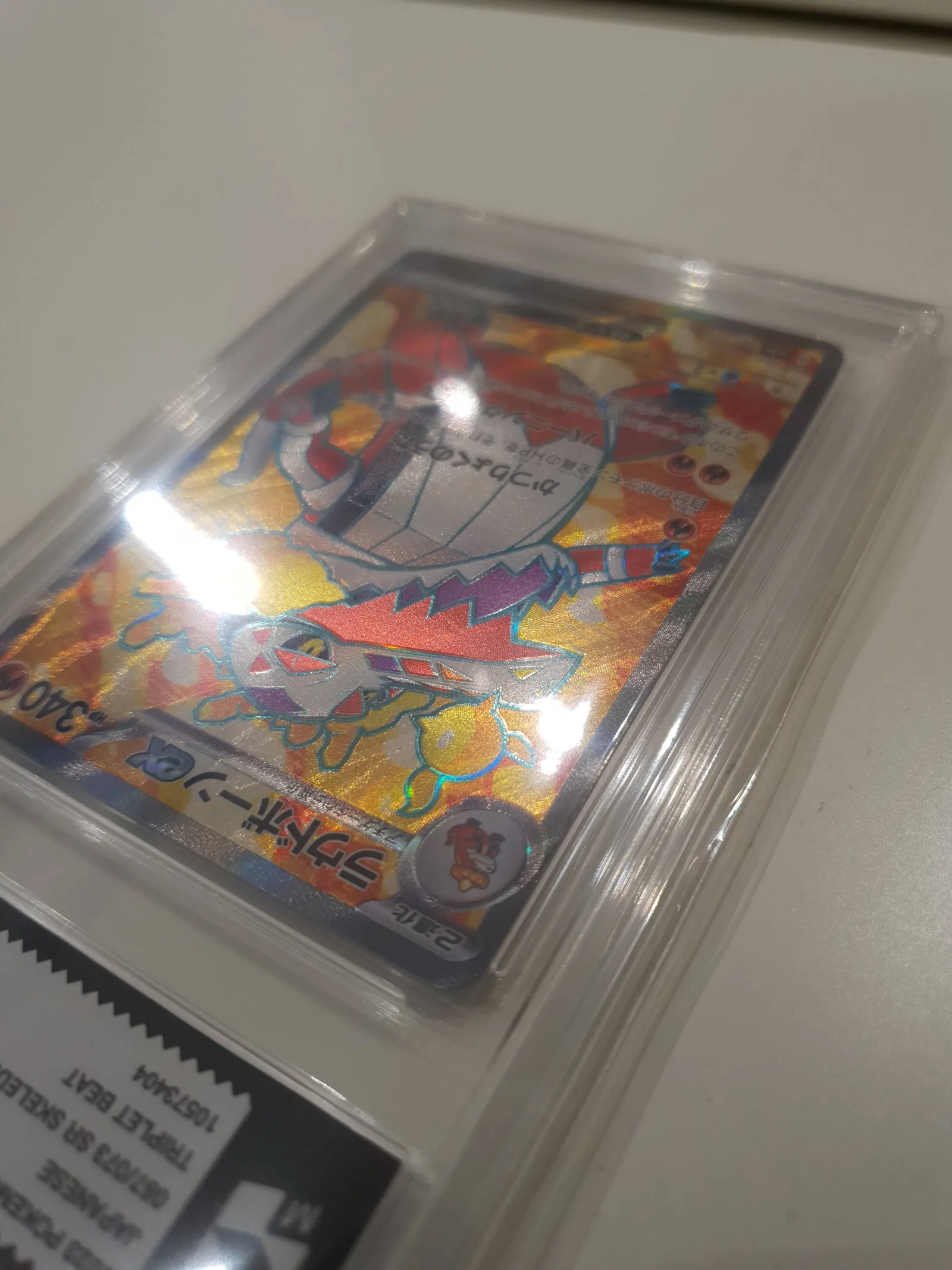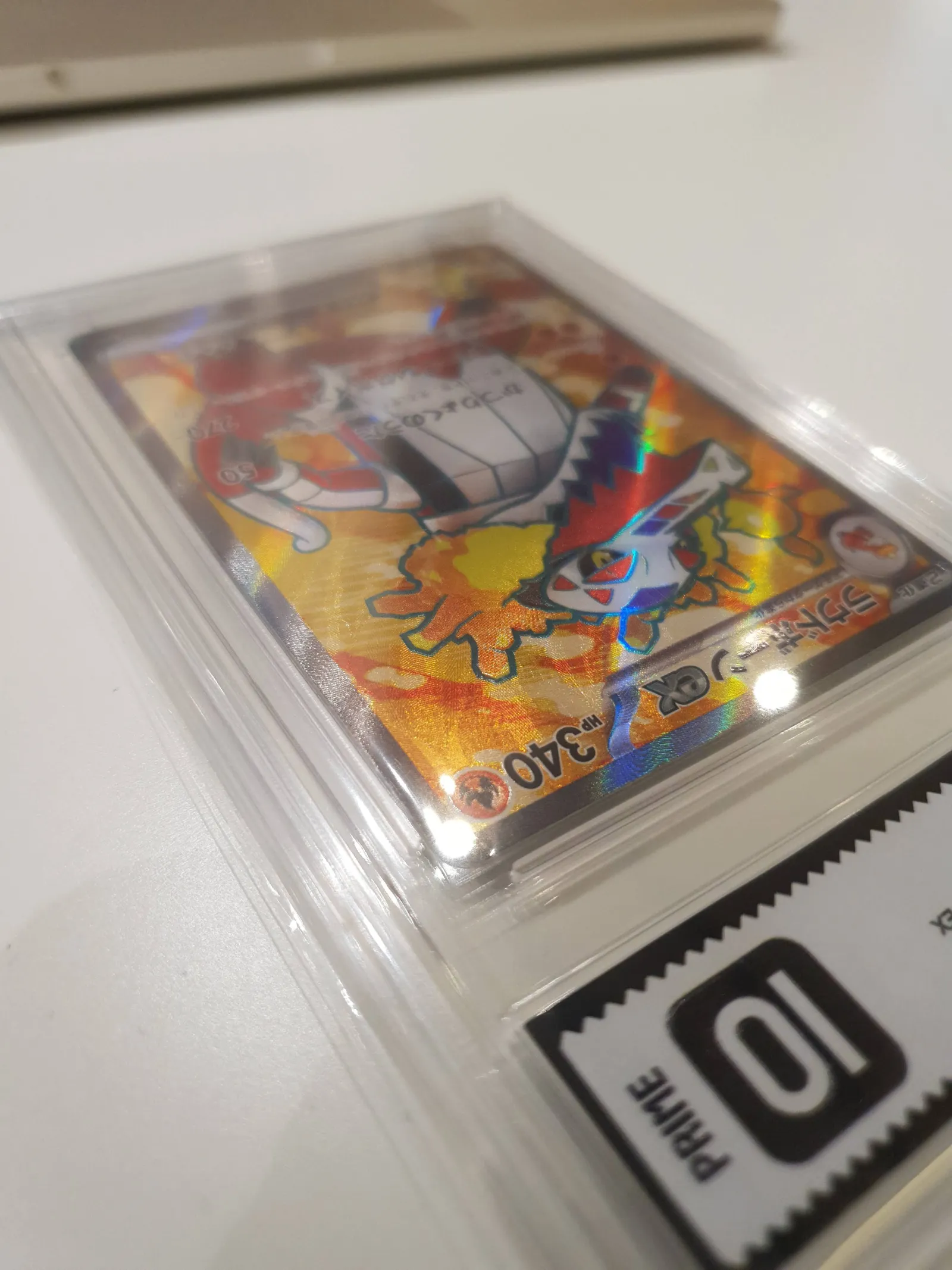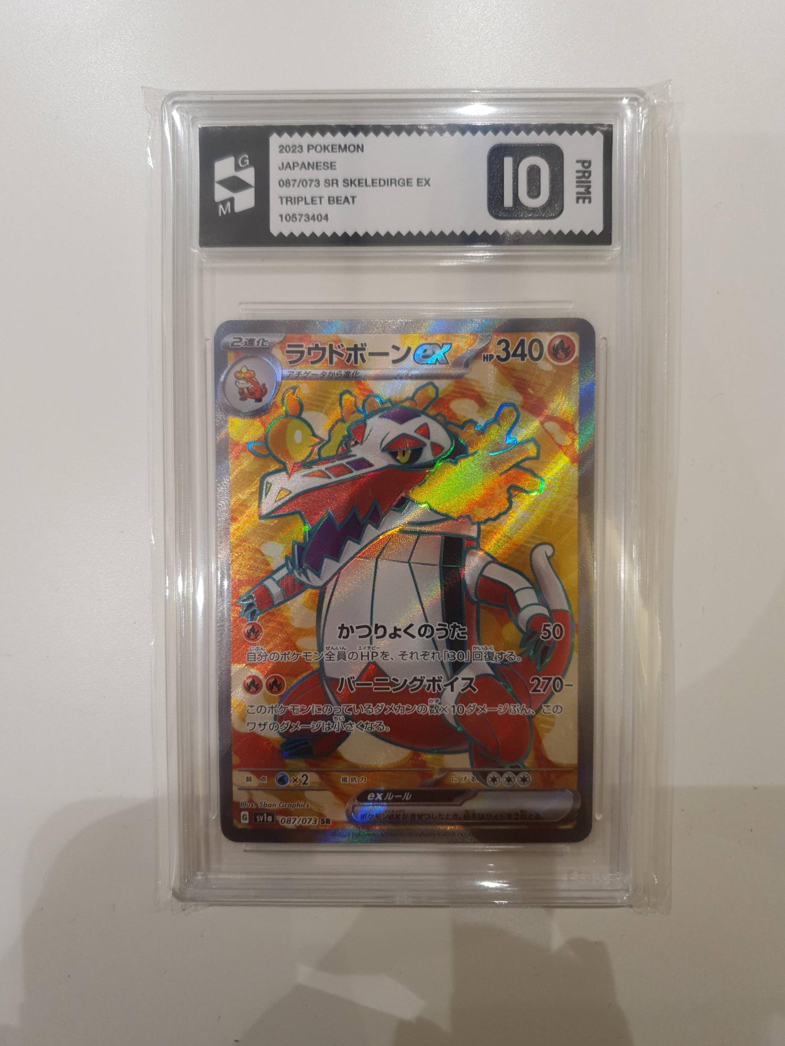 Graded GM 10 Prime 2023 Japanese Skeledirge EX Secret Rare (SR) from Triplet Beat set. Card number 087/073. This foil EX card features the attack Triplet Beat. Card is fully playable in meta and also highly collectible. Card artist is Shan Shraphire.