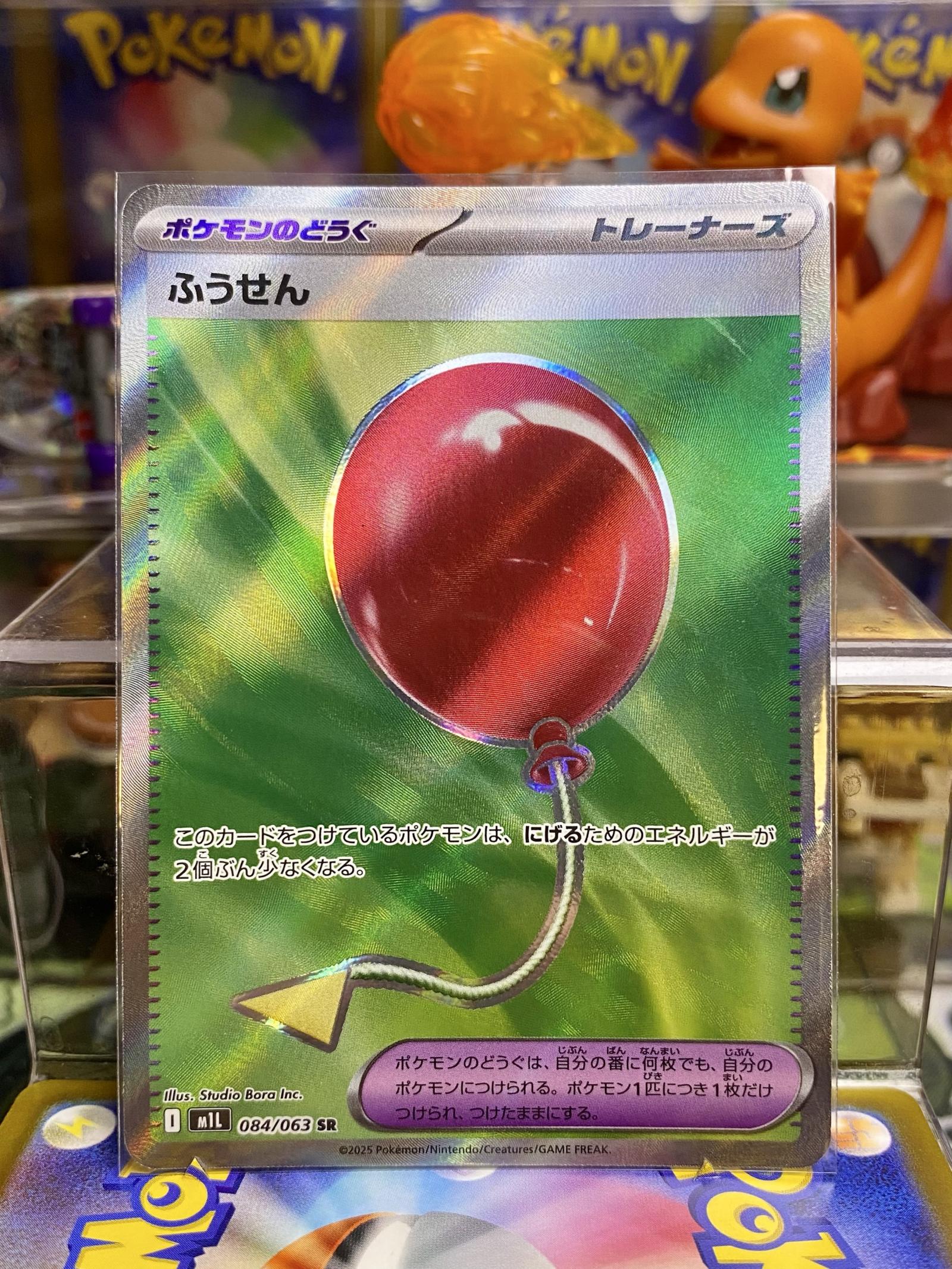 Japanese Balloon (ふうせん) SR card number 084/063 from the Sword & Shield (SWSH) 1st Edition set. Illustrated by Studio Bora Inc. This is a secret rare full-art trainer card with foil treatment. Released in 2025 by Pokemon/Nintendo/Creatures/GAME FREAK. Playable in the Pokemon TCG meta but also highly collectible due to its rarity and foil.