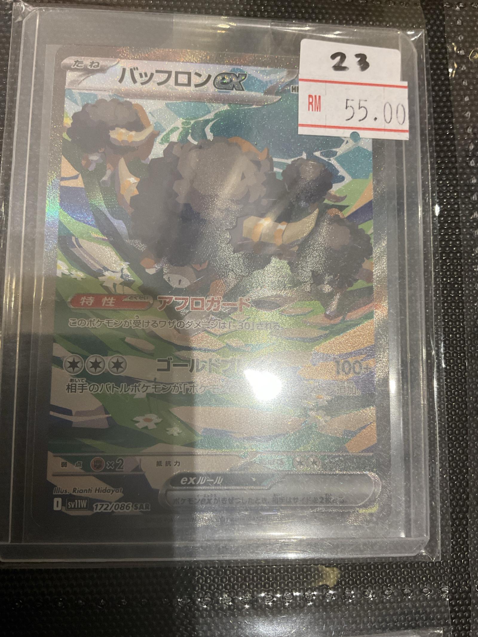 This is a Japanese Buffron GX card from the SV11W set, card number 172/086 SAR. Illustrated by Rianti Hidayat. The card features a special shiny alternate rare (SAR) holo treatment. It is a collectible card playable in the Pokemon TCG. The card is in Japanese language and is foil. The product price is RM 55.00.