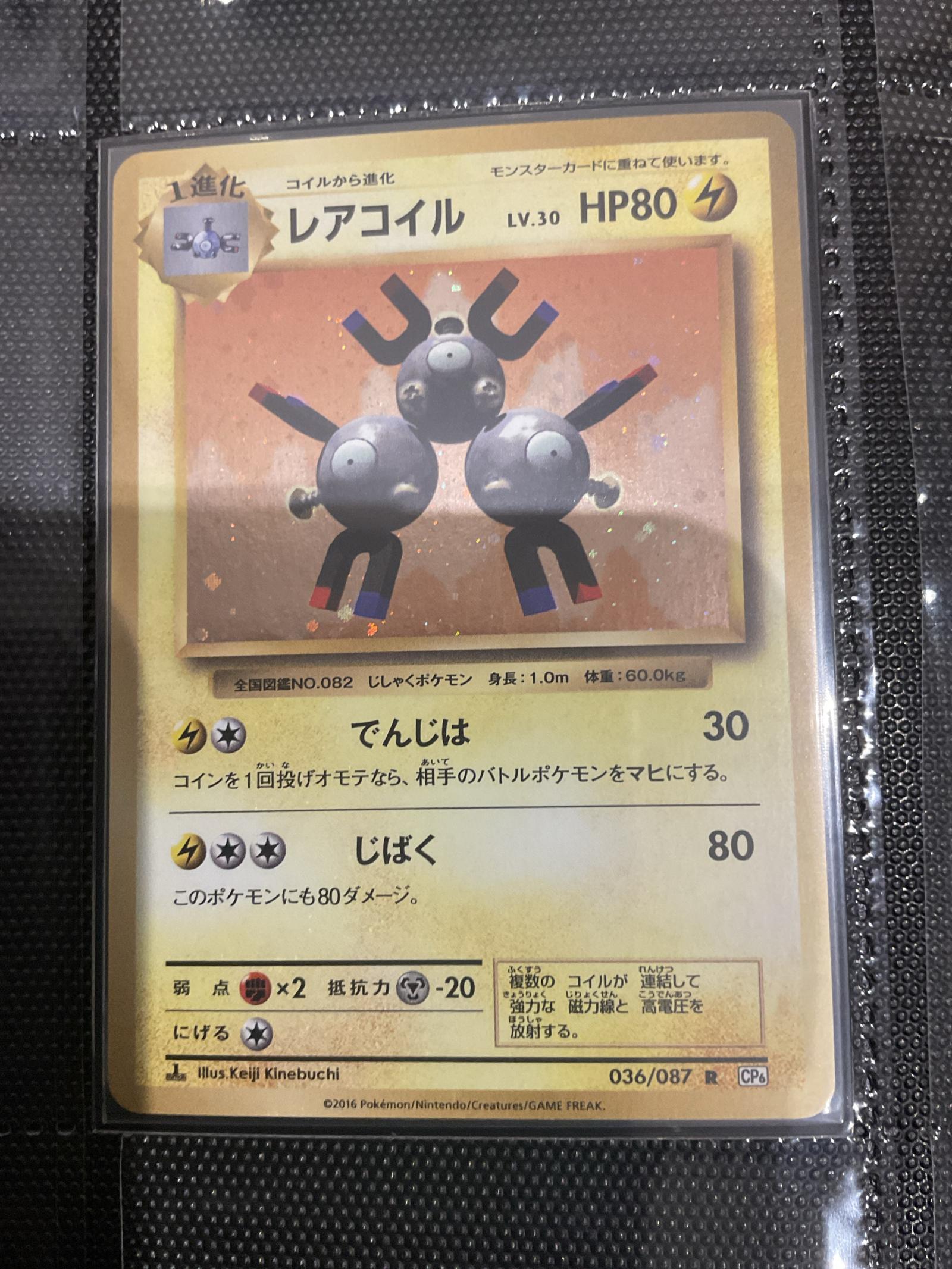 Japanese Magneton (コイルから進化) LV.30 with HP80 from CP6 set, card number 036/087. Illustrator: Keiji Kinebuchi. This card features foil treatment. Playability is more collectible due to language and meta impact. Card code: 036/087.