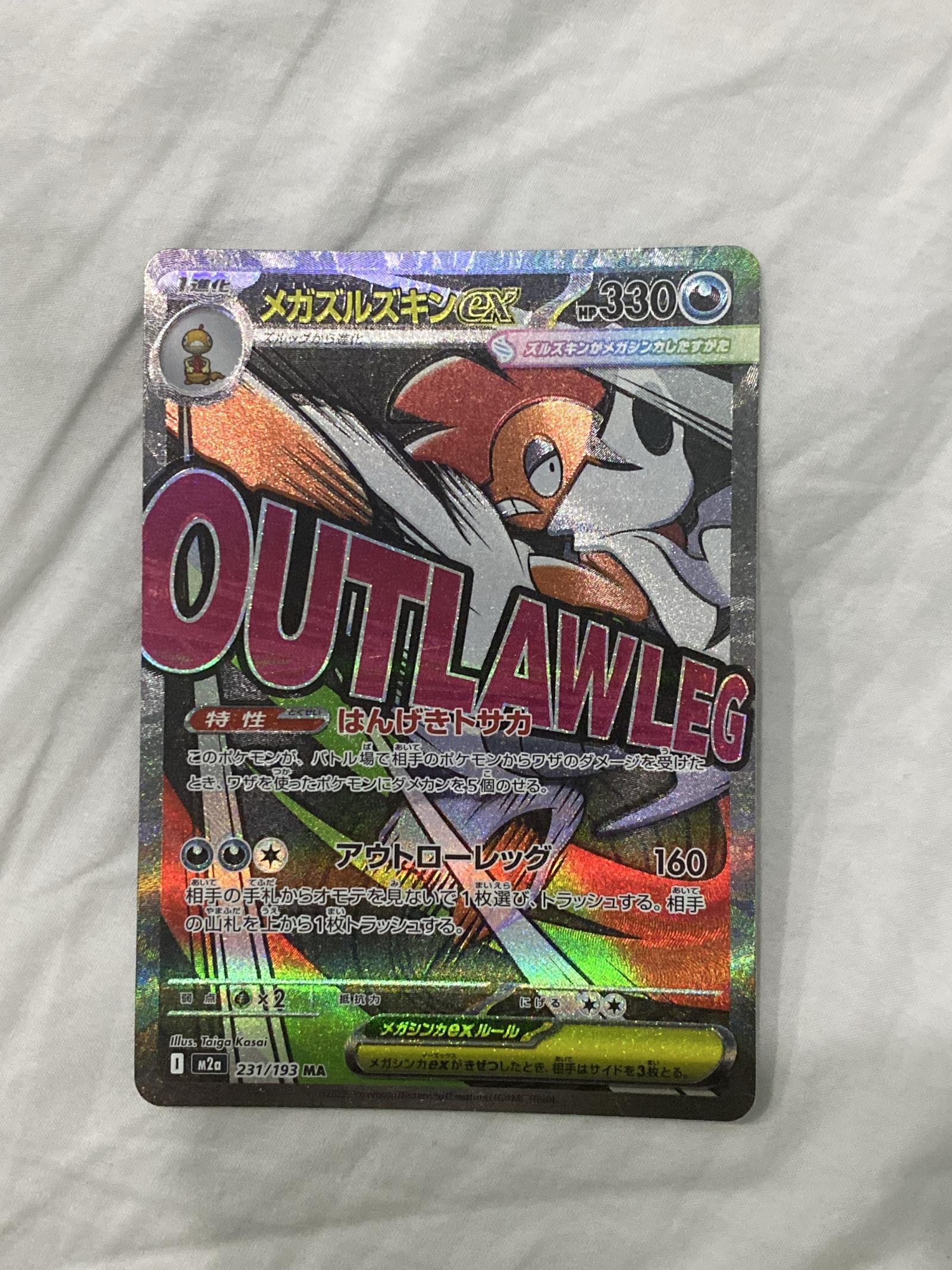 Japanese Mega Blaziken EX full art Pokemon TCG card from the M2a set. Card number 231/193. Illustrated by Taiga Kosai. This is a holo foil card featuring a powerful EX Pokemon. Collectible and playable in certain formats. Card code 231/193. Language: Japanese.