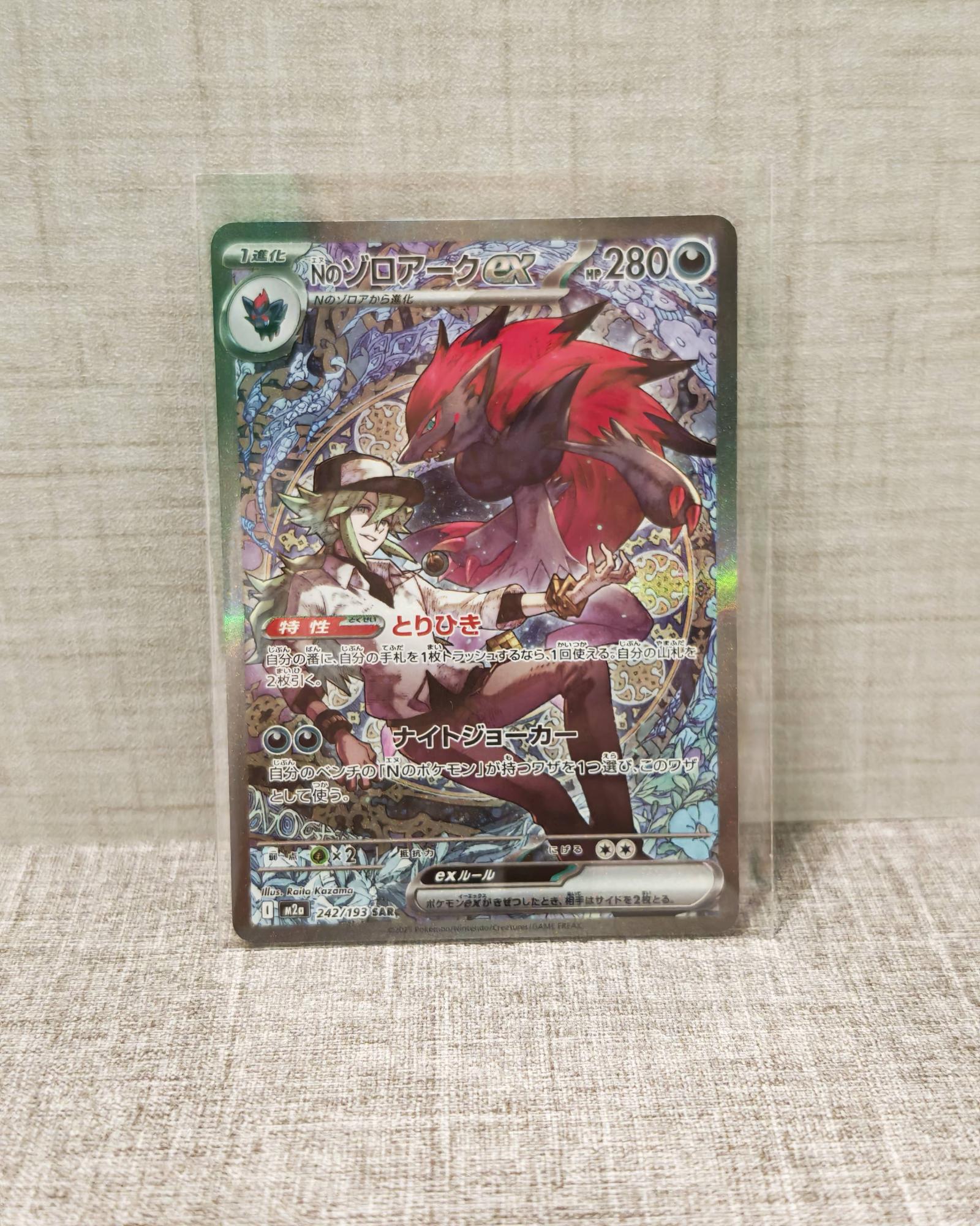 Japanese holo rare card featuring N's Zoroark ex with 280 HP. This card is part of the Pokemon TCG and is collectible. The card art shows detailed artwork with a sparkling holo finish. Language: Japanese. Card is from a set highly regarded among collectors.