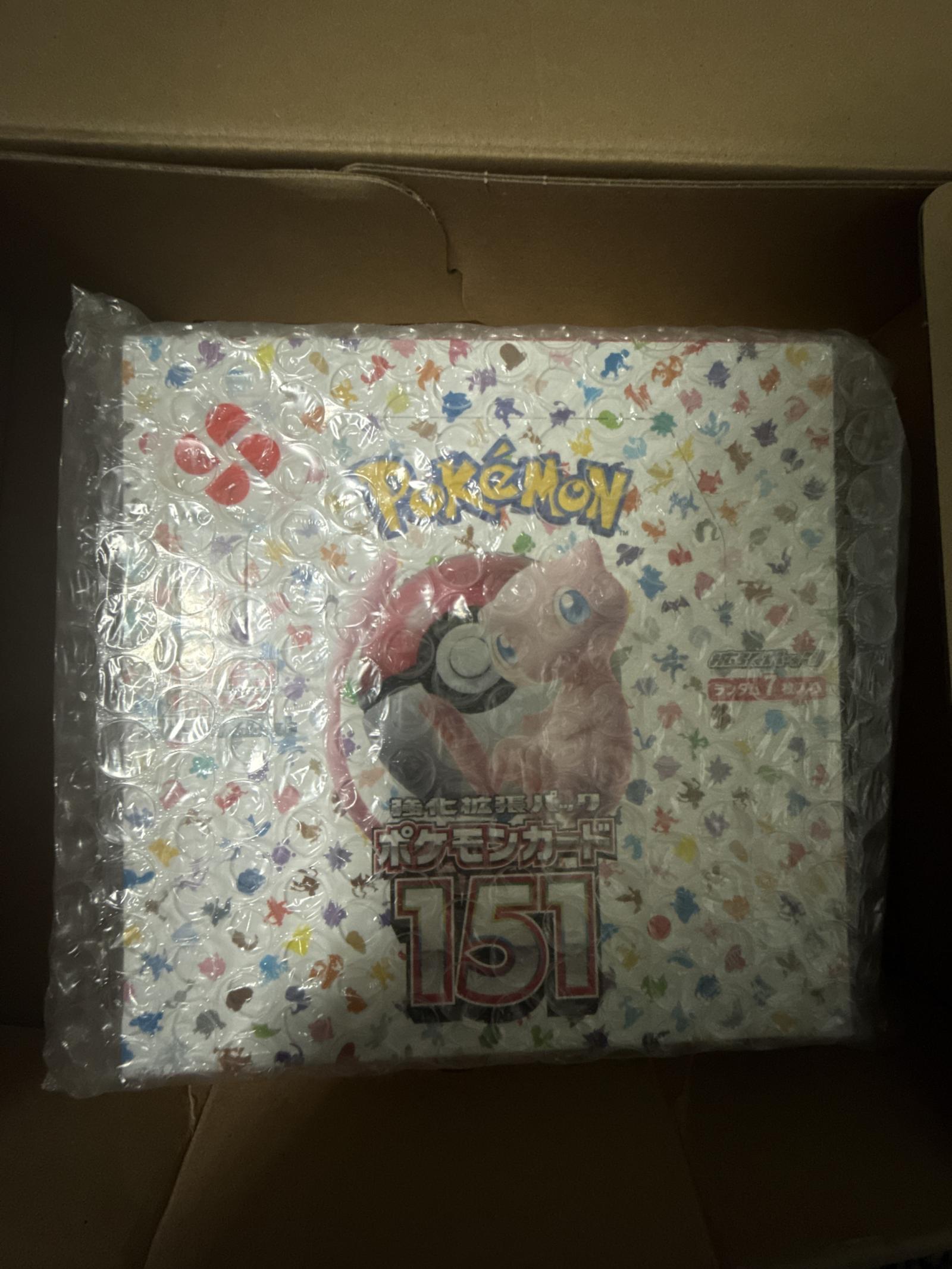 Japanese Pokémon Card 151 Collector's Set featuring Mew and Poké Ball on the cover. This set showcases the original 151 Pokémon and is a highly collectible item for fans of classic Pokémon TCG. The packaging is in original bubble wrap. Card set is from Japan, and the product is not a single play card but a collectible set.