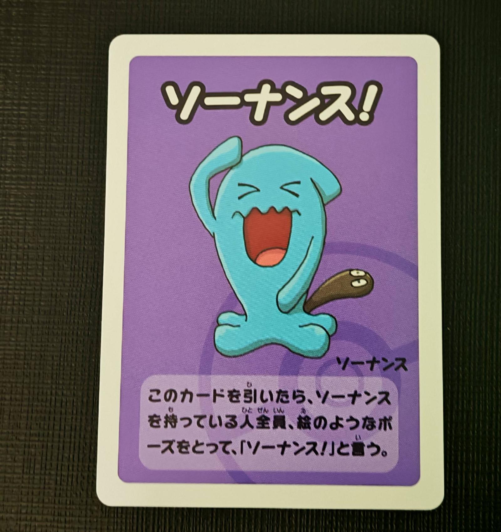 A 2023 Japanese promotional card featuring Sonansu (Wobbuffet) with playful artwork. No collector number or set code available. Card is non-foil and intended as a collectible rather than a playable TCG card. Produced by Nintendo/Creatures/Game Freak. Artist details not available.
