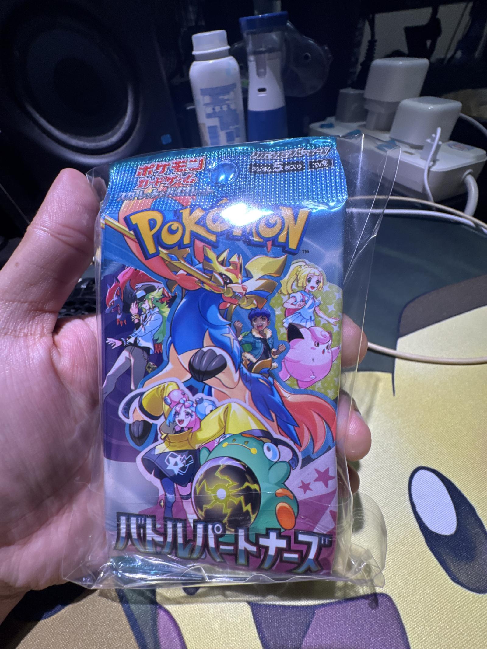 Sealed Japanese booster pack from the Battle Partners set (SV9). Features artwork of Pokémon and trainers, includes 5 cards per pack. This is a collectible item for fans and players alike. Language: Japanese. Packaging foil treatment. Not graded.