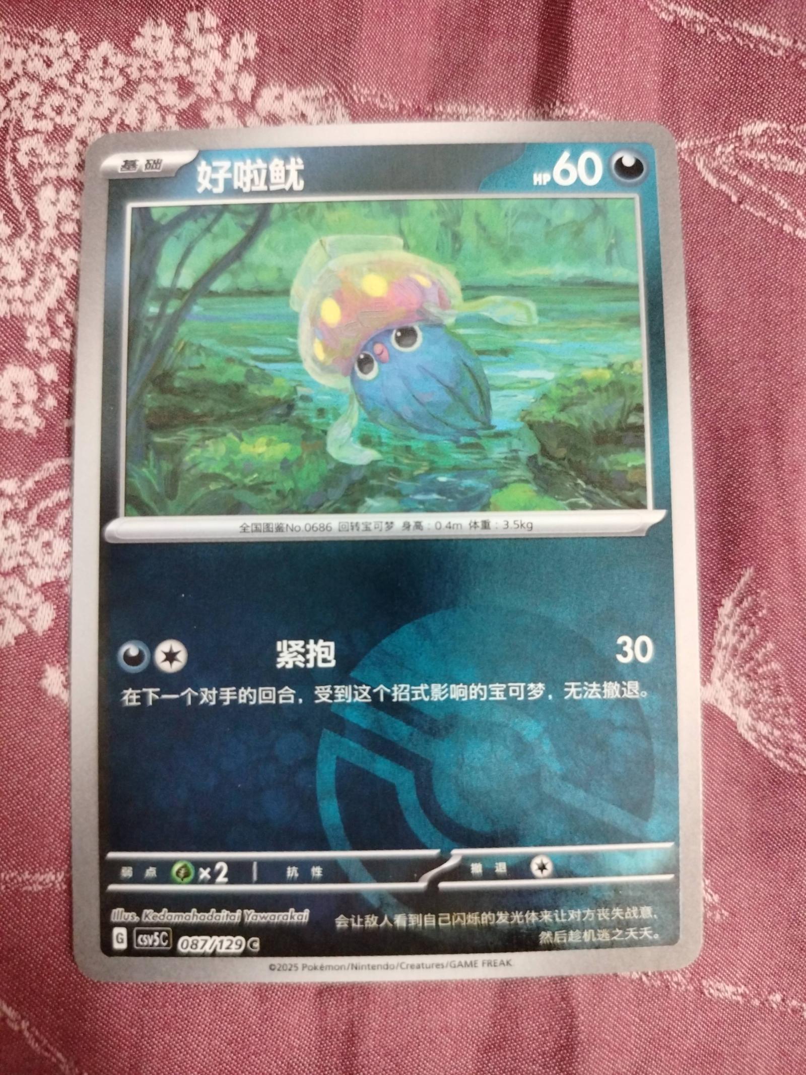 好啦鱿 card from the Sword & Shield VSTAR Custom Glow set (card code 087/129) featuring artwork by Kedamahodai Yawaraka. This card is in Japanese language and is a normal printing treatment. It is a common (C) card with no foil. Suitable mainly for collectors rather than competitive play.
