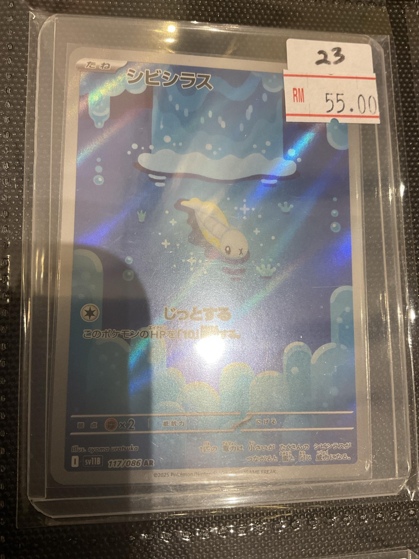 This is a Japanese Sobble (シビシラス) card number 117 from the SV11b set (promo). The card code is 117/086 AR. It features artwork by Gyomo Urafuko and is a holo foil card. Released in 2025 by Pokemon/Nintendo/Creatures/Game Freak. This card is mostly collectible and part of the Sword & Shield series promotions.