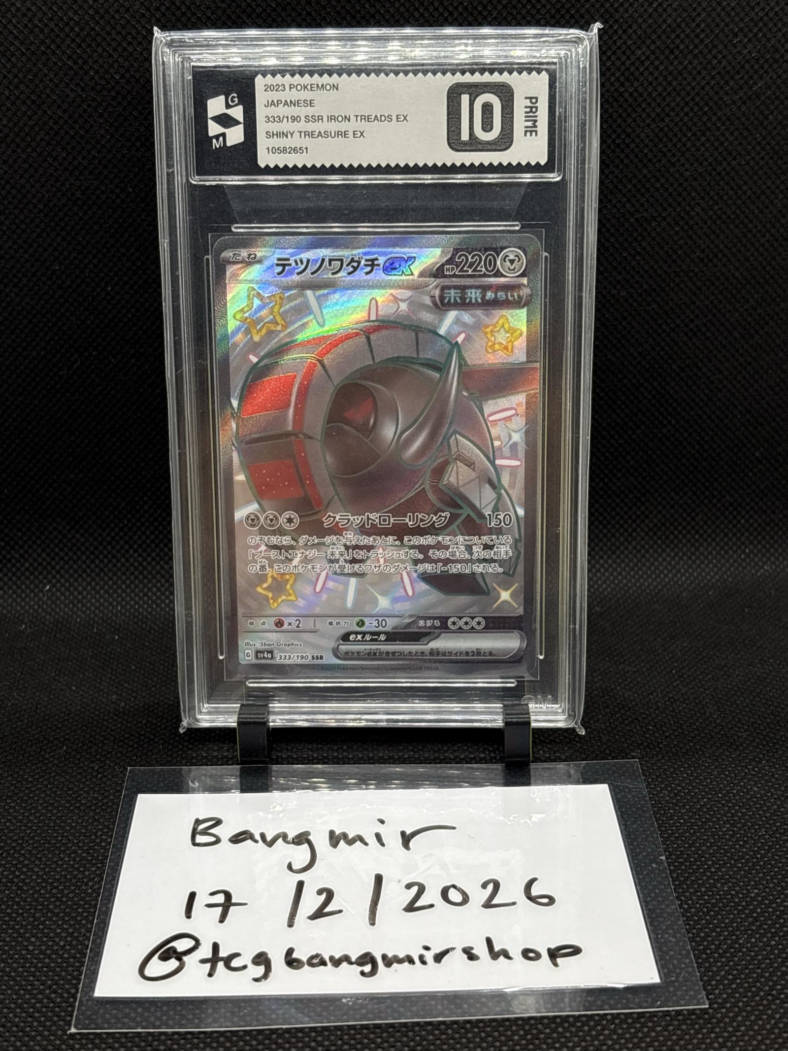 2023 Japanese Pokémon TCG card SSR Iron Treads EX from the Shiny Treasure EX set. Card number 333/190, with artist Shibuzoh. This card is graded PSA 10 PRIME, making it a highly collectible and valuable card. The card features a shiny treatment and is part of a playable TCG set, though it is often collected for rarity and beauty.