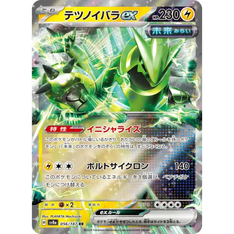 Japanese Pokemon TCG card Tetsuno Ibara ex, card number 56/187 from the SV8a set, illustrated by PLANETA Mochizuki. This card is an ultra rare (RR) foil holo with a starry holo pattern. It is playable in the Pokemon TCG with the ex rule, as indicated on the card. The card is in Japanese language. Ideal for collectors and players looking for special edition cards.
