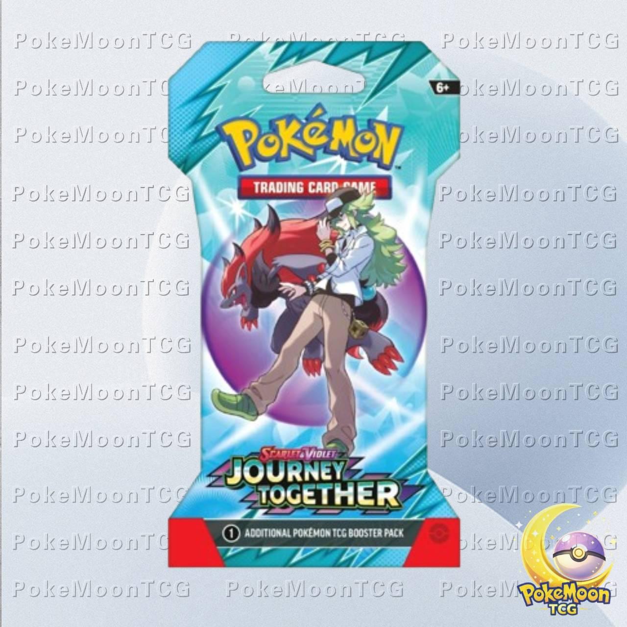 Booster pack from the Sword & Shield Scarlet Violet Journey Together set featuring character artwork. Contains 1 additional Pokemon TCG card. Not a single card, but a collectible booster pack.