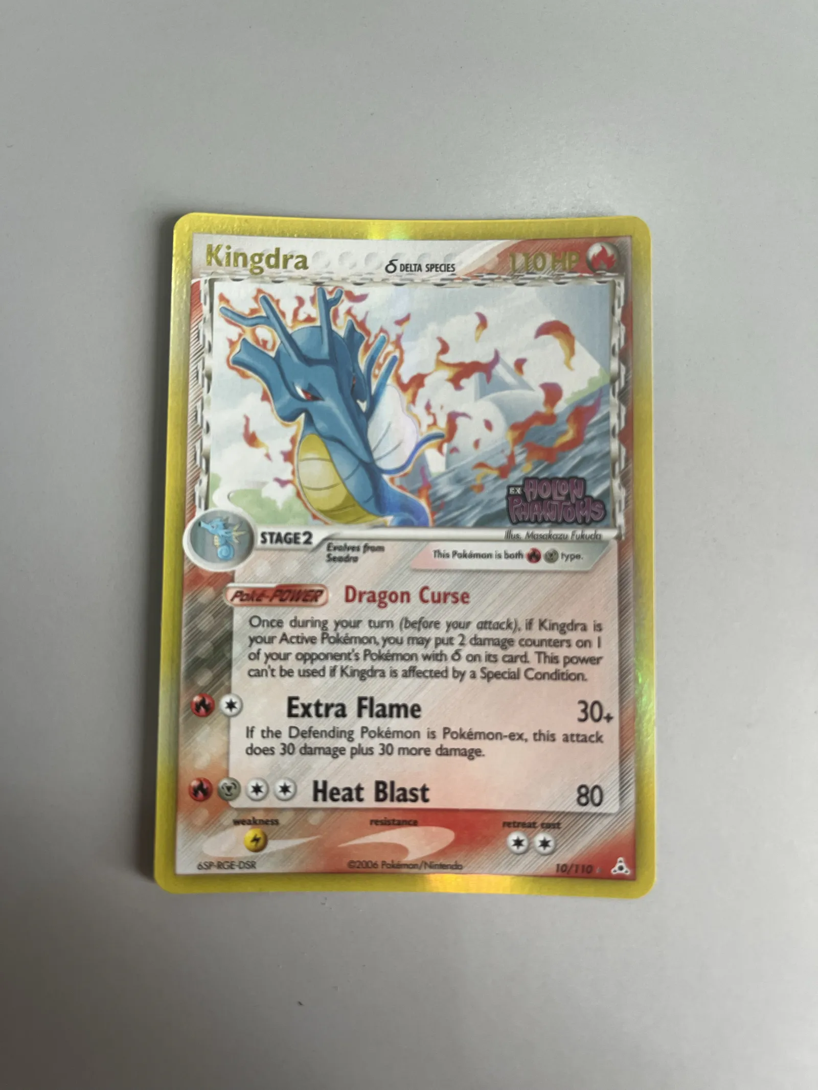 This card is part of the iconic EX-era and showcases the unique Delta Species mechanic, where Kingdra appears as an unusual type—making it a standout piece for collectors.
